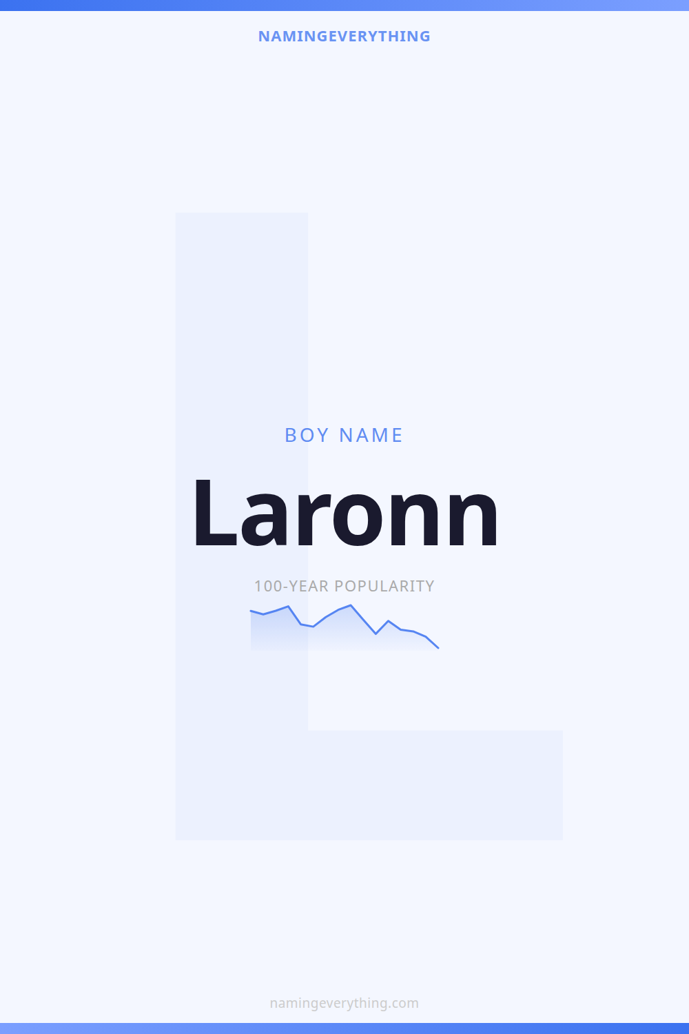 Download a shareable image with Laronn's meaning, origin, and popularity. Ready for Instagram, Pinterest, or texting to your partner.