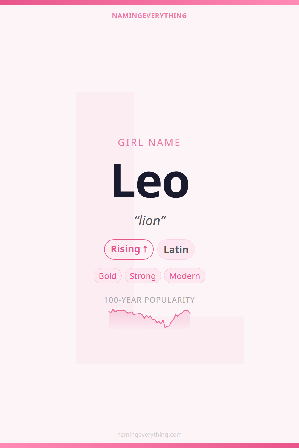 In astrology, Leo (July 23 - Aug 22) is the sign of the lion, associated with confidence, creativity, and leadership. Naming a girl Leo can be seen as a direct claim to those traits. It also carries the legacy of 13 popes and countless historical figures.