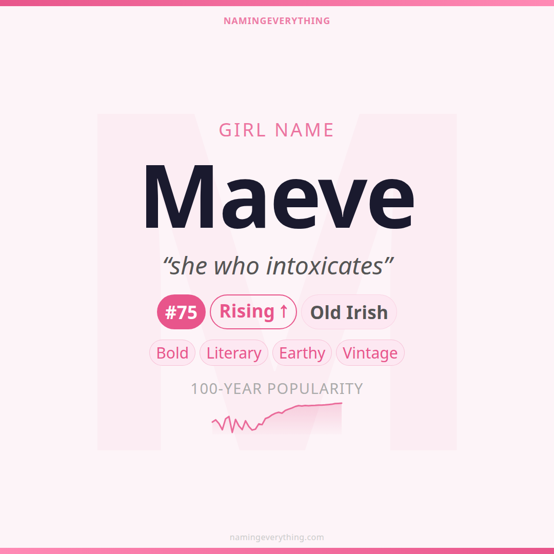Download a shareable image with Maeve's meaning, origin, and popularity. Ready for Instagram, Pinterest, or texting to your partner.