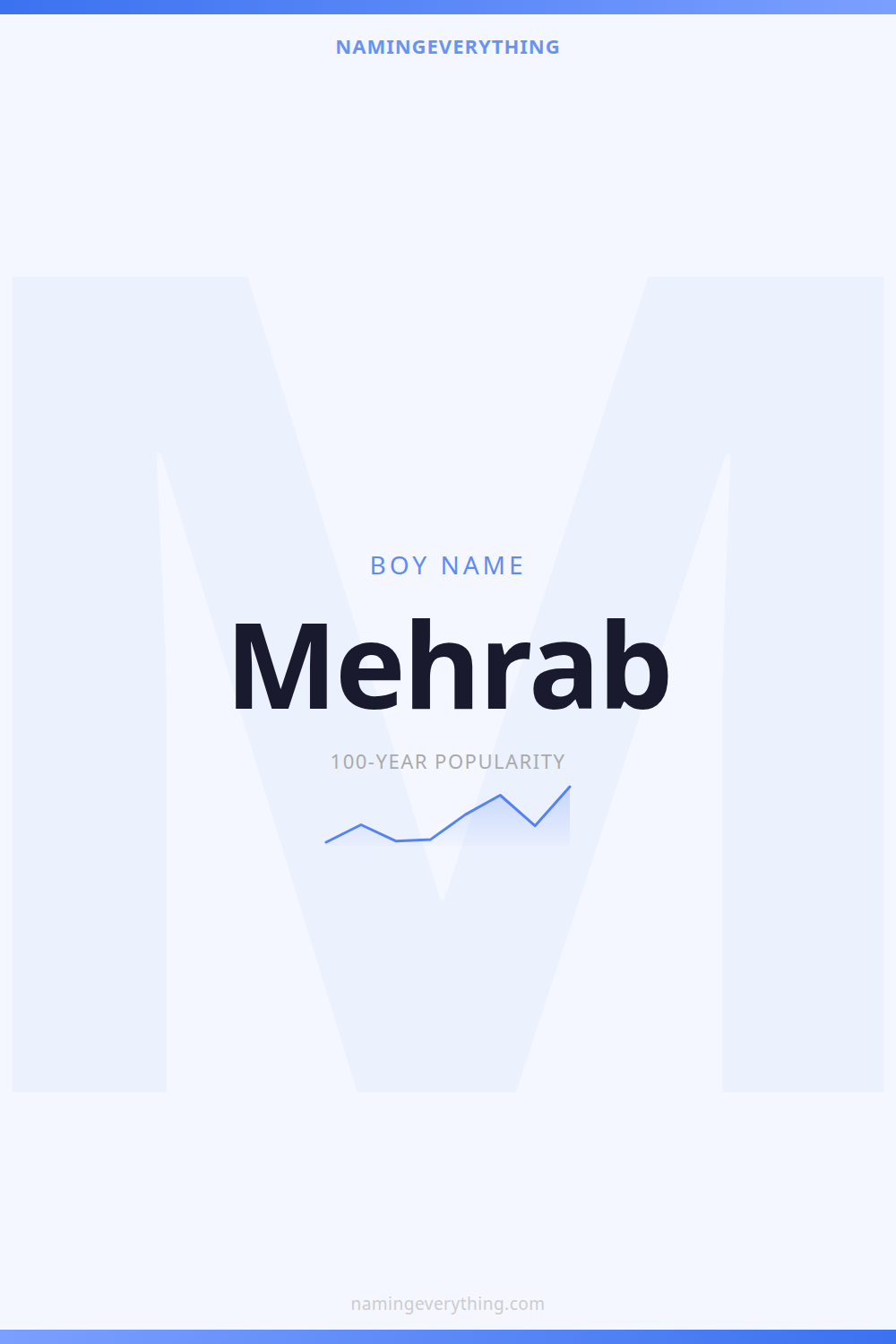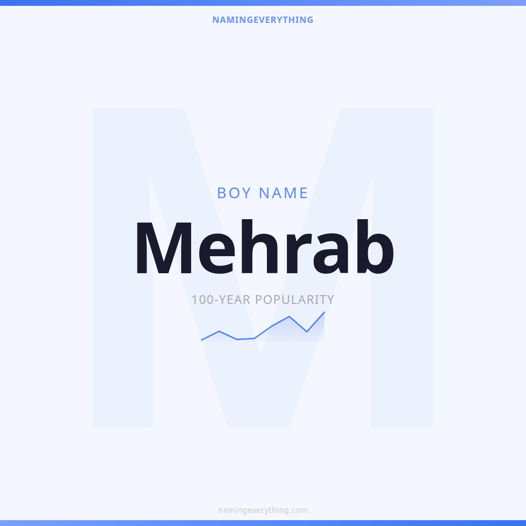 Download a shareable image with Mehrab's meaning, origin, and popularity. Ready for Instagram, Pinterest, or texting to your partner.