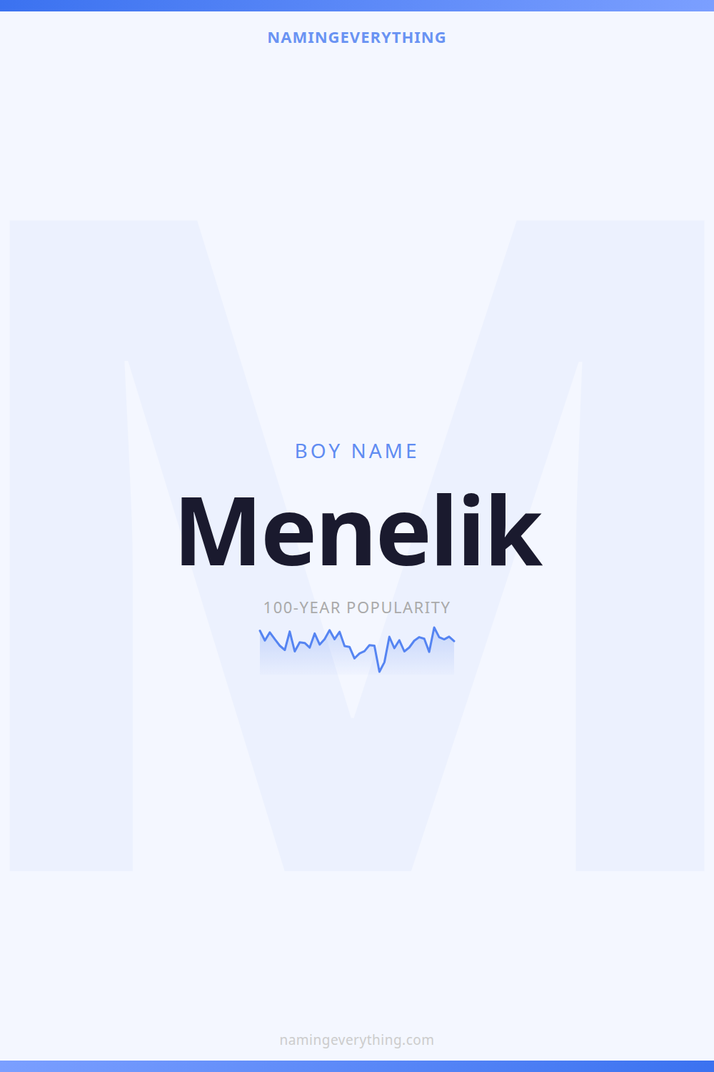Download a shareable image with Menelik's meaning, origin, and popularity. Ready for Instagram, Pinterest, or texting to your partner.