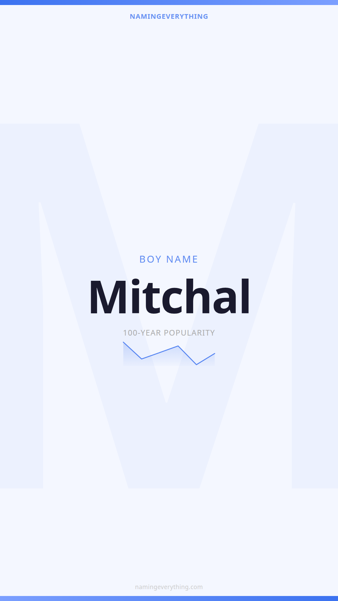 Download a shareable image with Mitchal's meaning, origin, and popularity. Ready for Instagram, Pinterest, or texting to your partner.