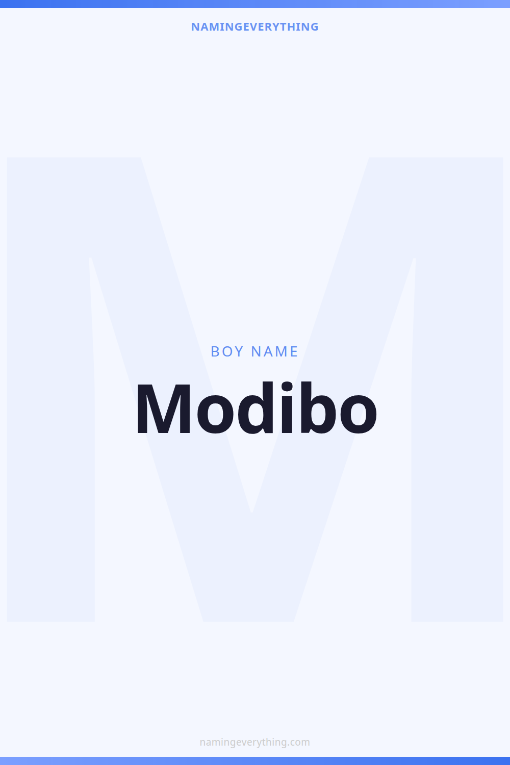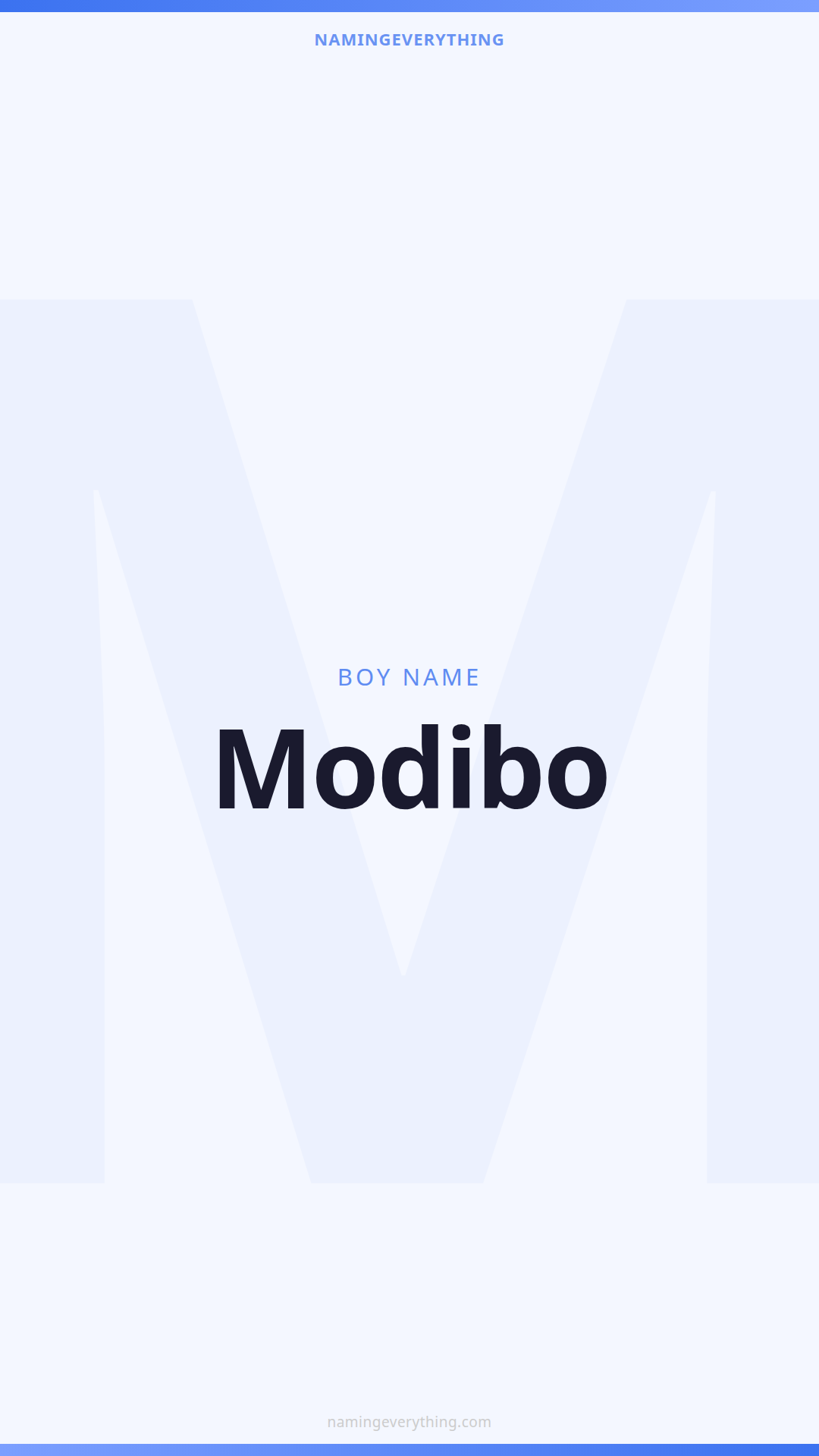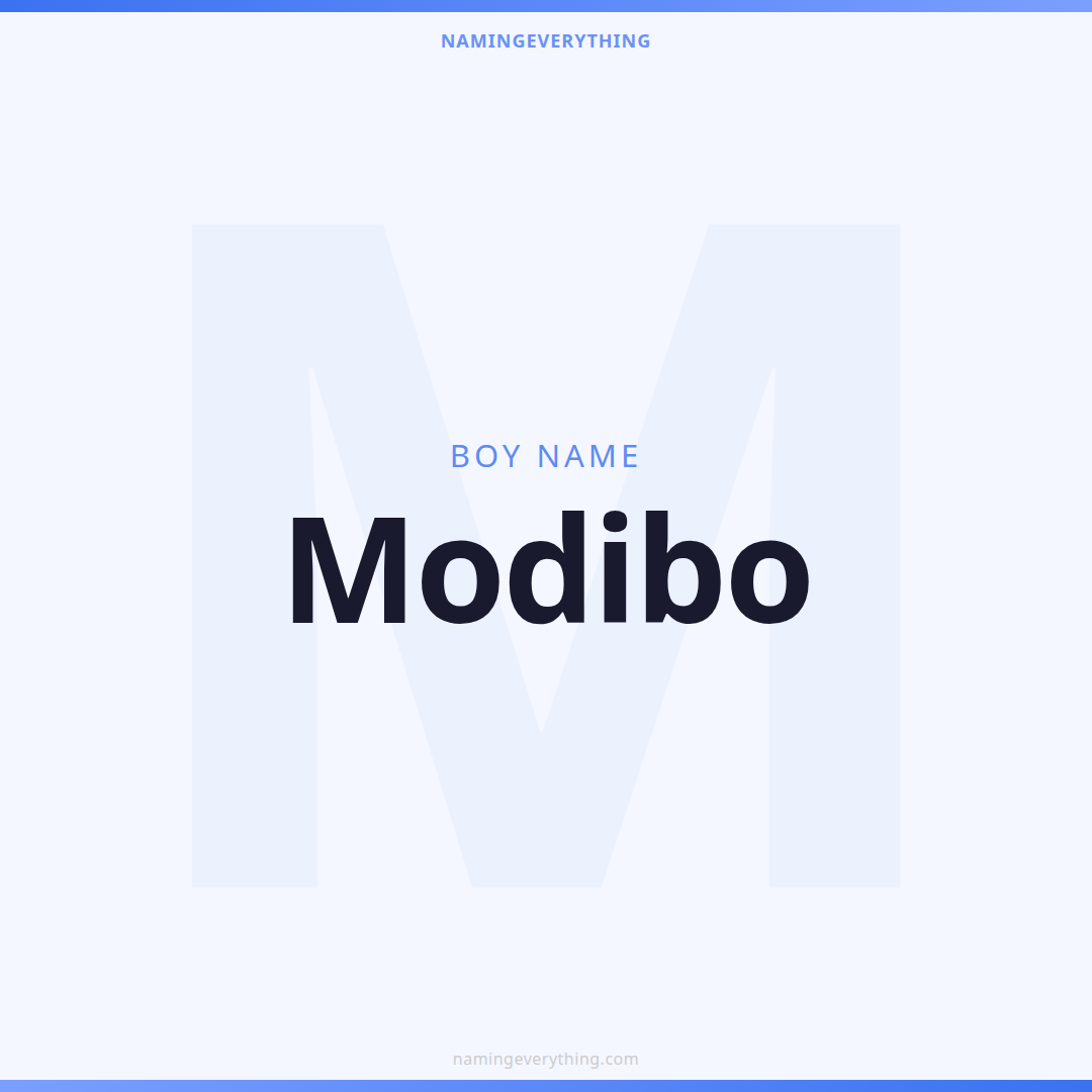 Download a shareable image with Modibo's meaning, origin, and popularity. Ready for Instagram, Pinterest, or texting to your partner.