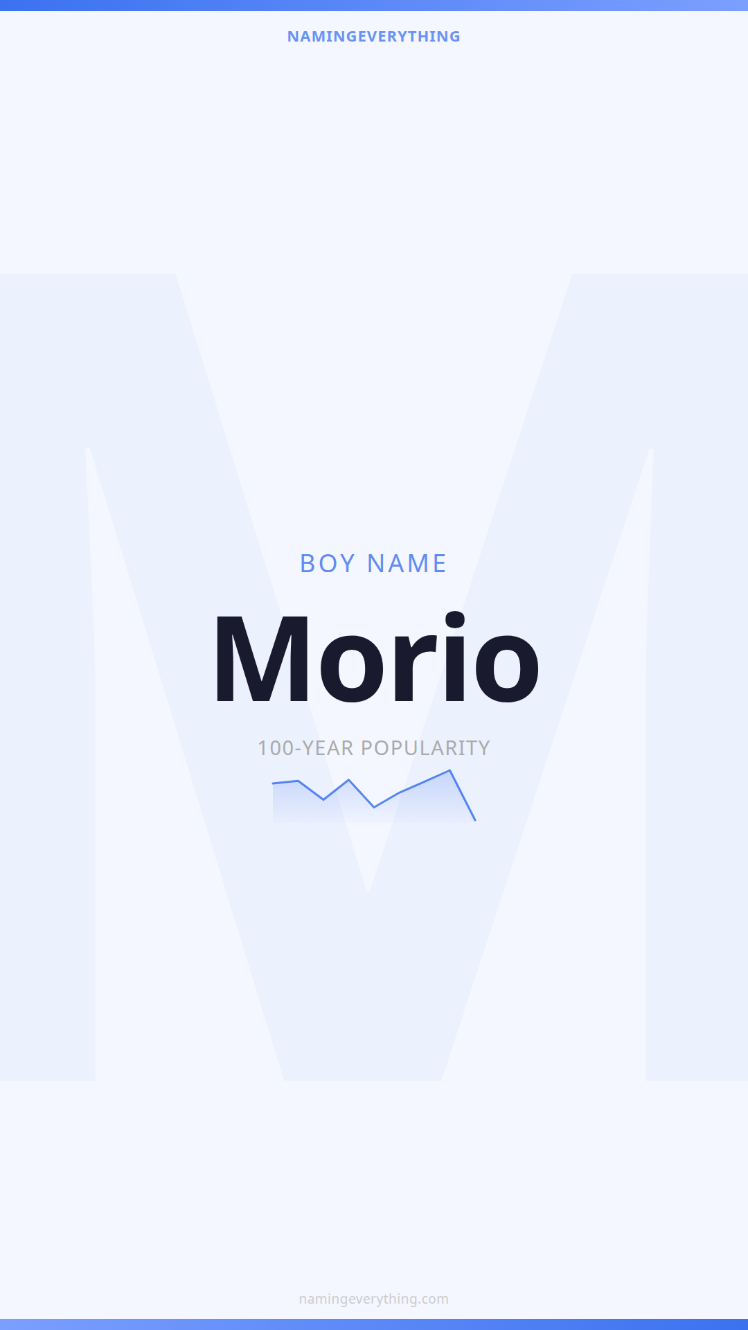 Download a shareable image with Morio's meaning, origin, and popularity. Ready for Instagram, Pinterest, or texting to your partner.