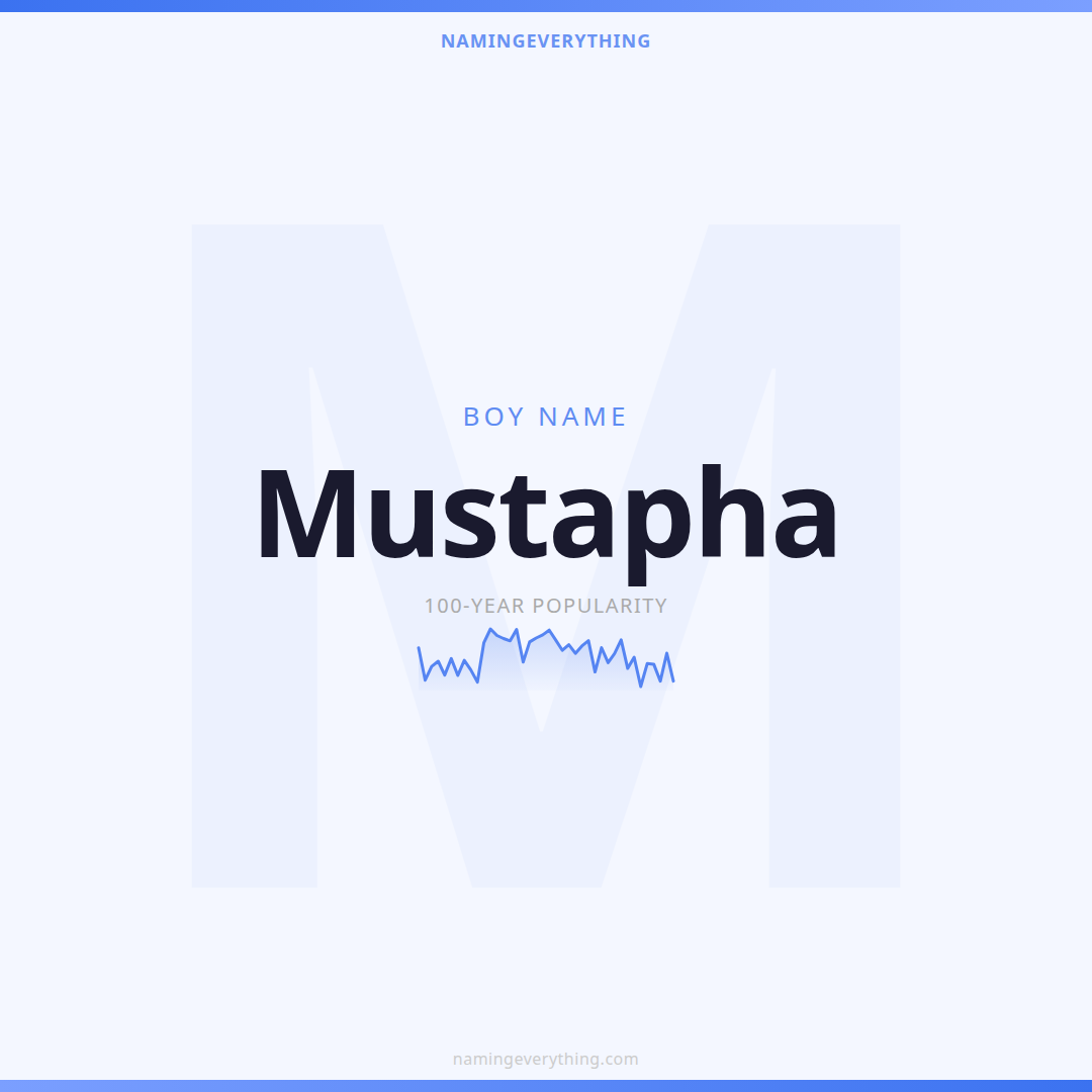 Download a shareable image with Mustapha's meaning, origin, and popularity. Ready for Instagram, Pinterest, or texting to your partner.