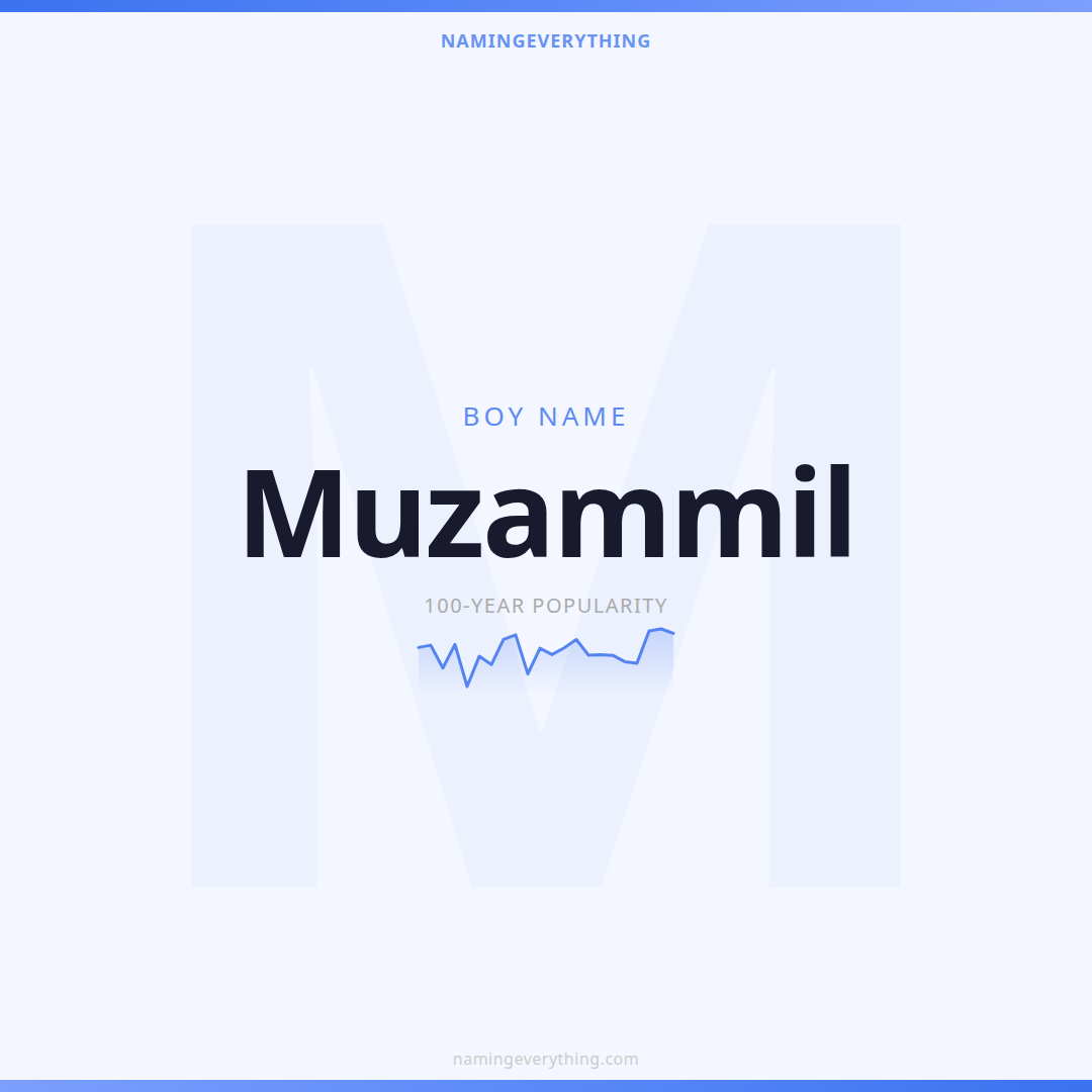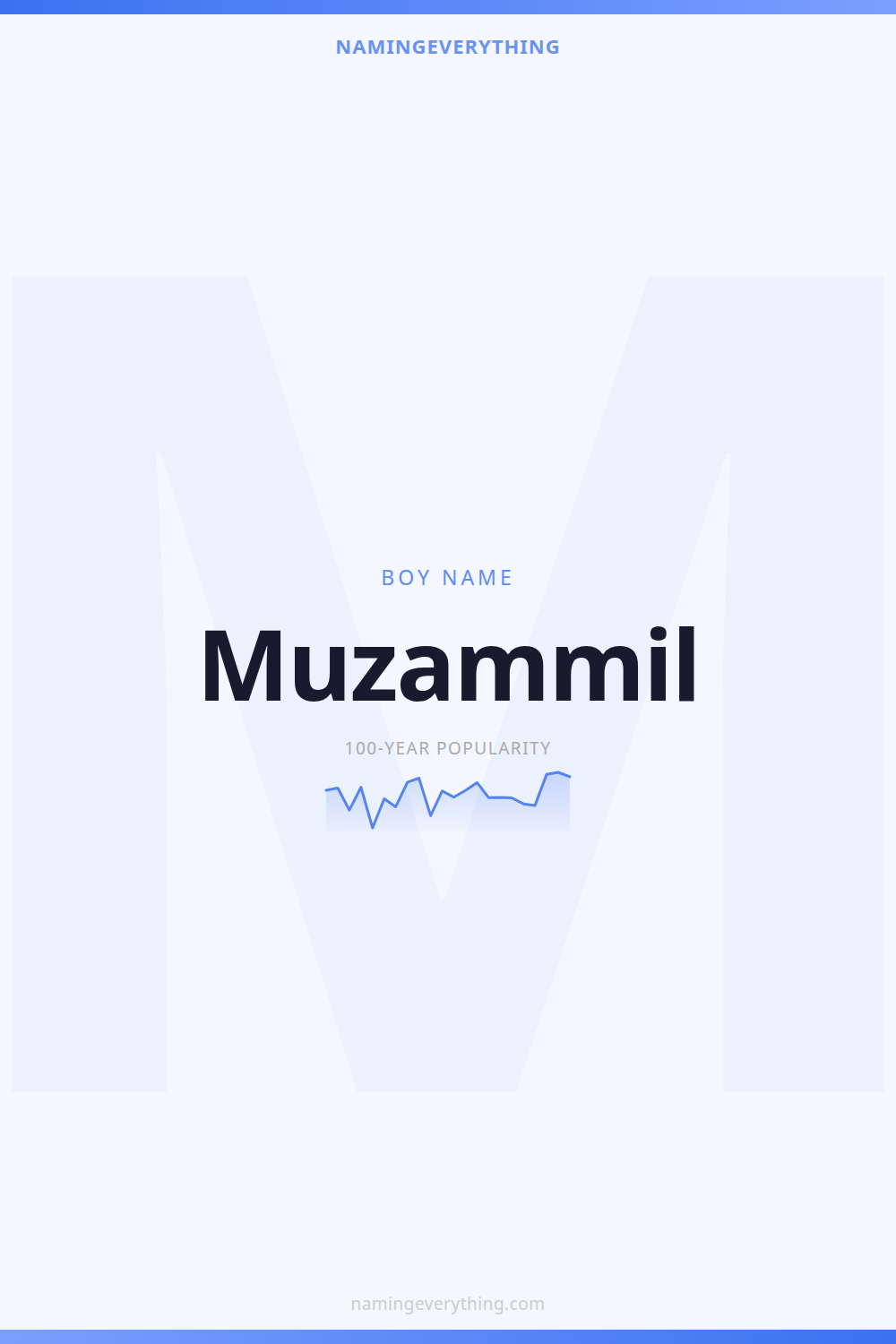 Download a shareable image with Muzammil's meaning, origin, and popularity. Ready for Instagram, Pinterest, or texting to your partner.