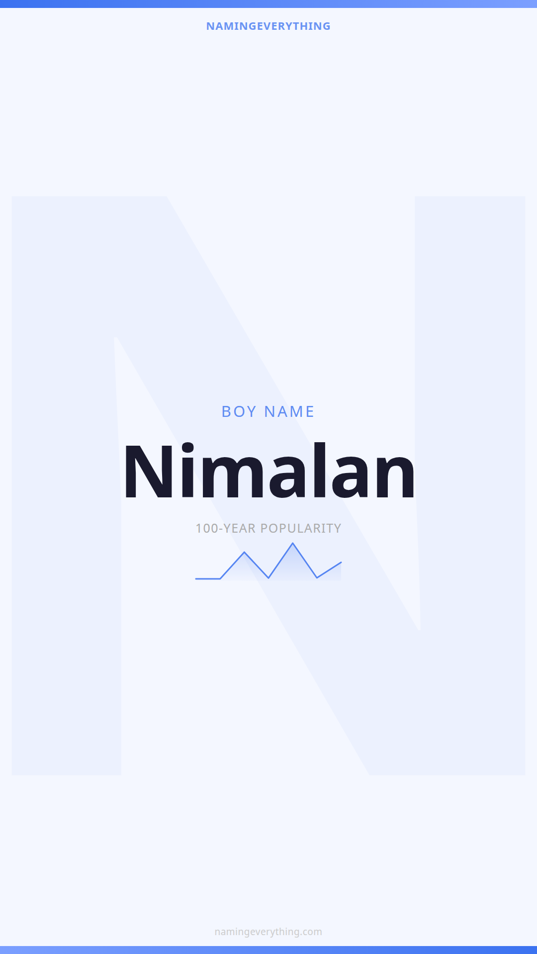 Download a shareable image with Nimalan's meaning, origin, and popularity. Ready for Instagram, Pinterest, or texting to your partner.