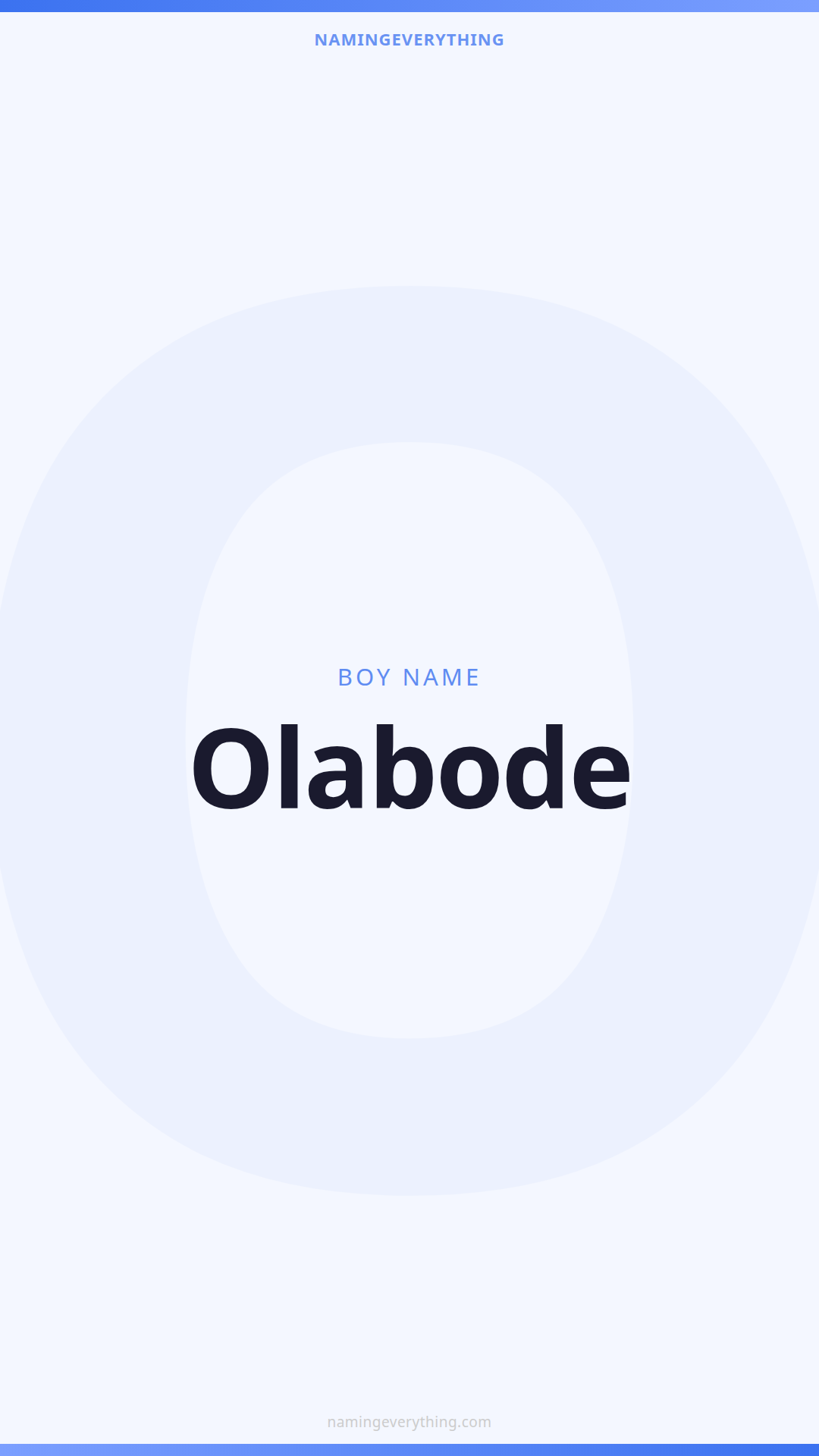 Download a shareable image with Olabode's meaning, origin, and popularity. Ready for Instagram, Pinterest, or texting to your partner.