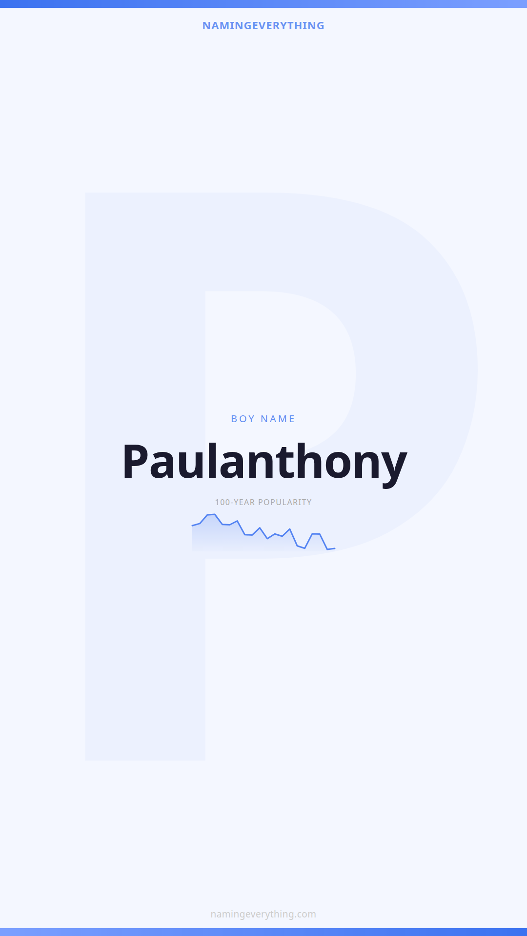 Download a shareable image with Paulanthony's meaning, origin, and popularity. Ready for Instagram, Pinterest, or texting to your partner.