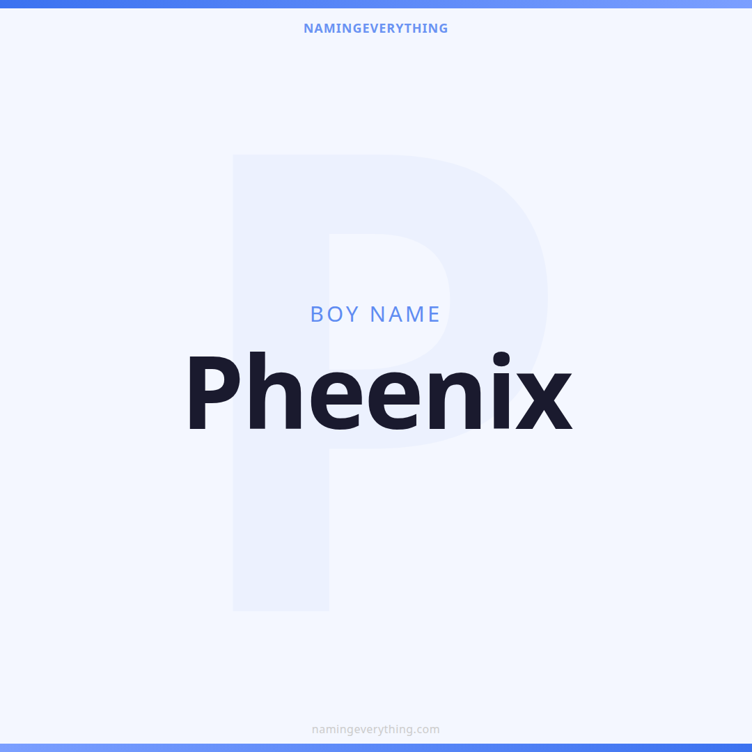 Download a shareable image with Pheenix's meaning, origin, and popularity. Ready for Instagram, Pinterest, or texting to your partner.