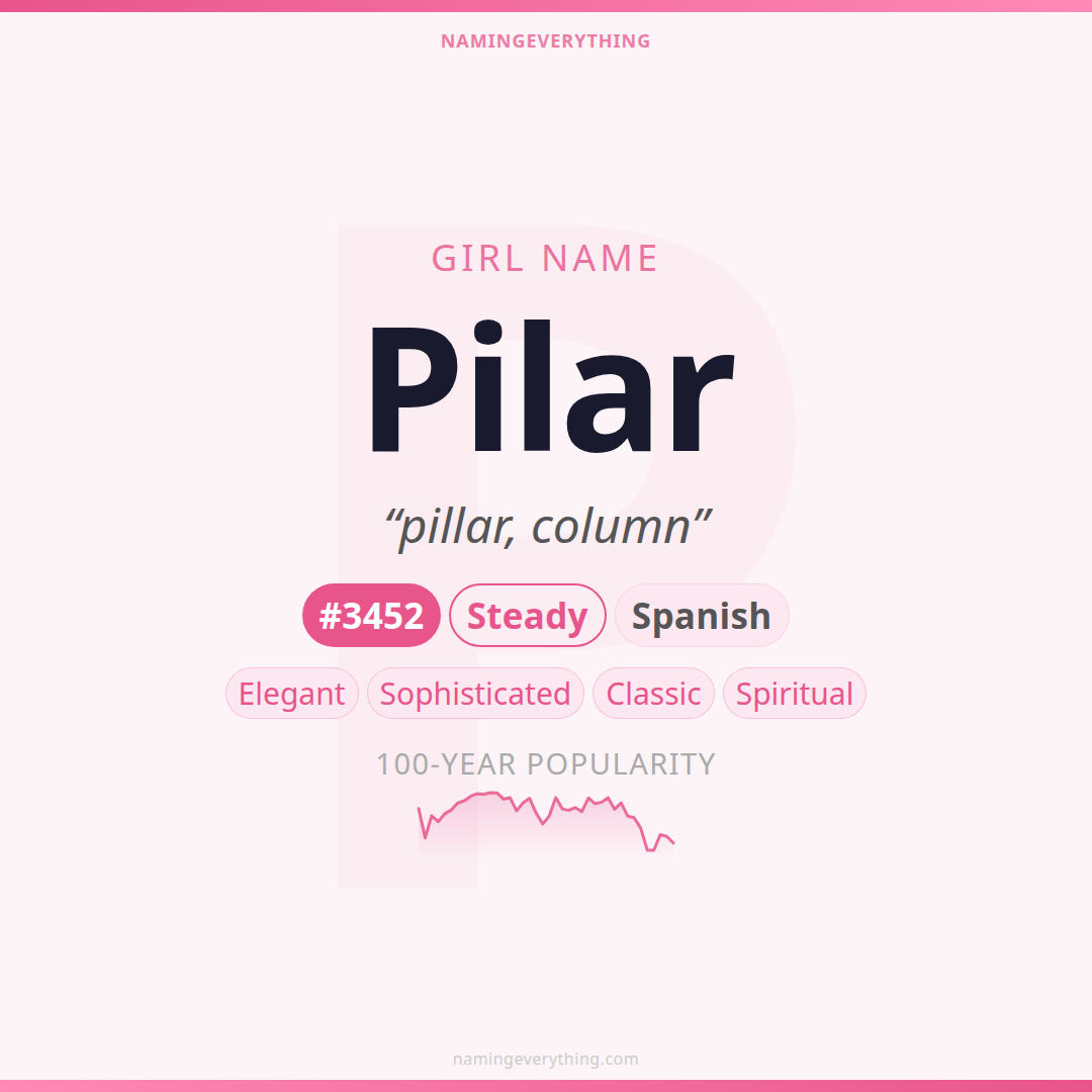 Download a shareable image with Pilar's meaning, origin, and popularity. Ready for Instagram, Pinterest, or texting to your partner.