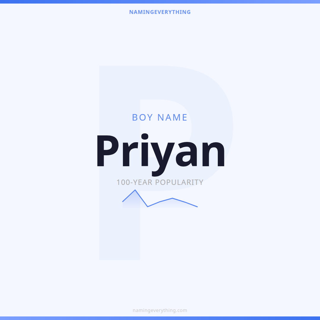 Download a shareable image with Priyan's meaning, origin, and popularity. Ready for Instagram, Pinterest, or texting to your partner.