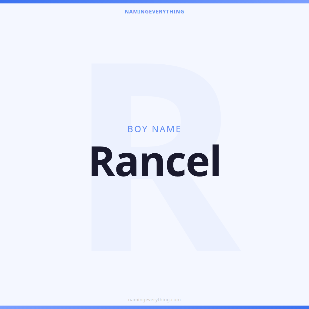 Download a shareable image with Rancel's meaning, origin, and popularity. Ready for Instagram, Pinterest, or texting to your partner.