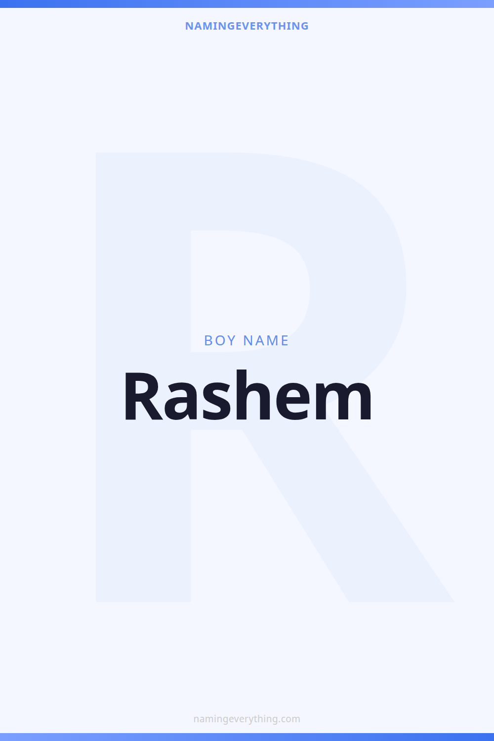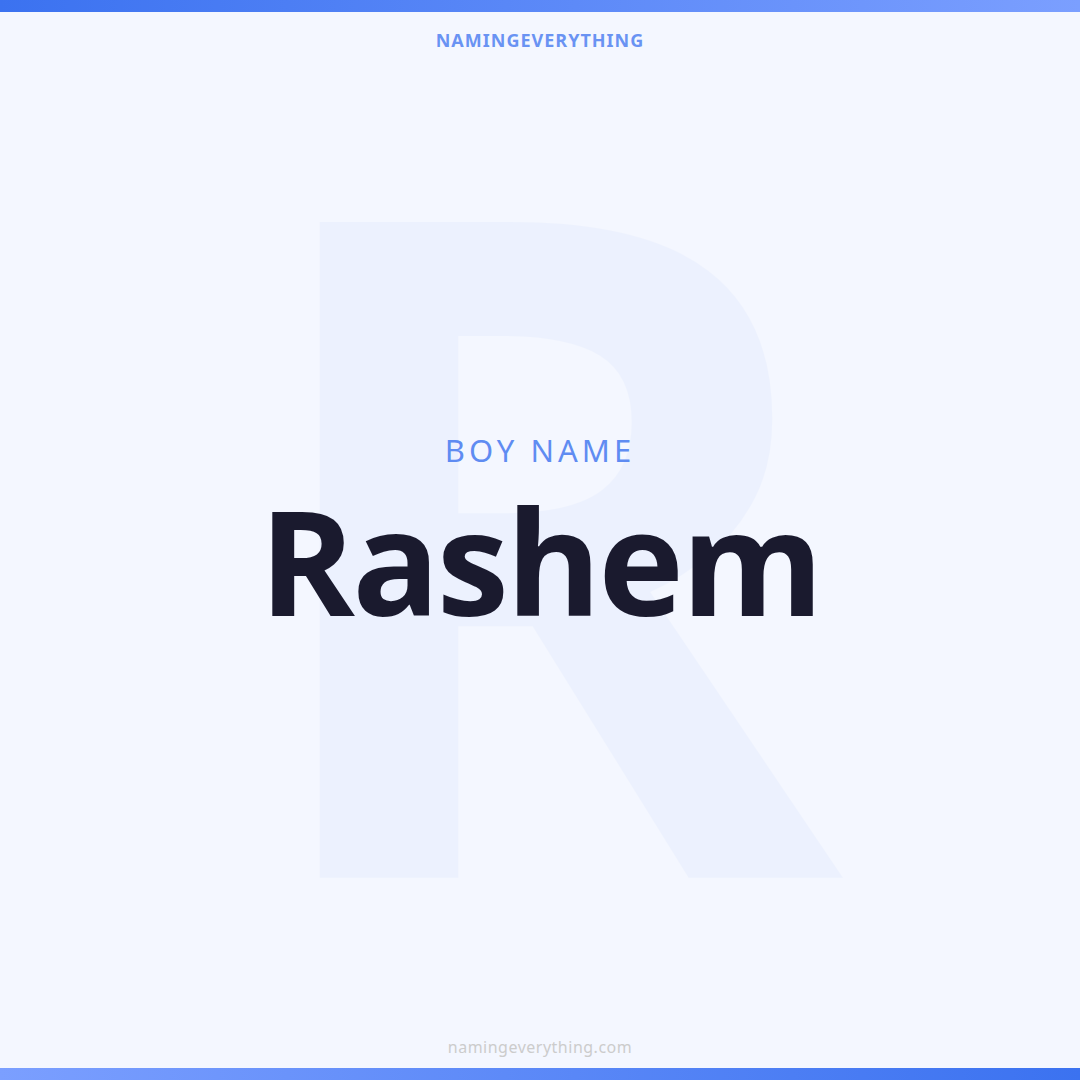Download a shareable image with Rashem's meaning, origin, and popularity. Ready for Instagram, Pinterest, or texting to your partner.