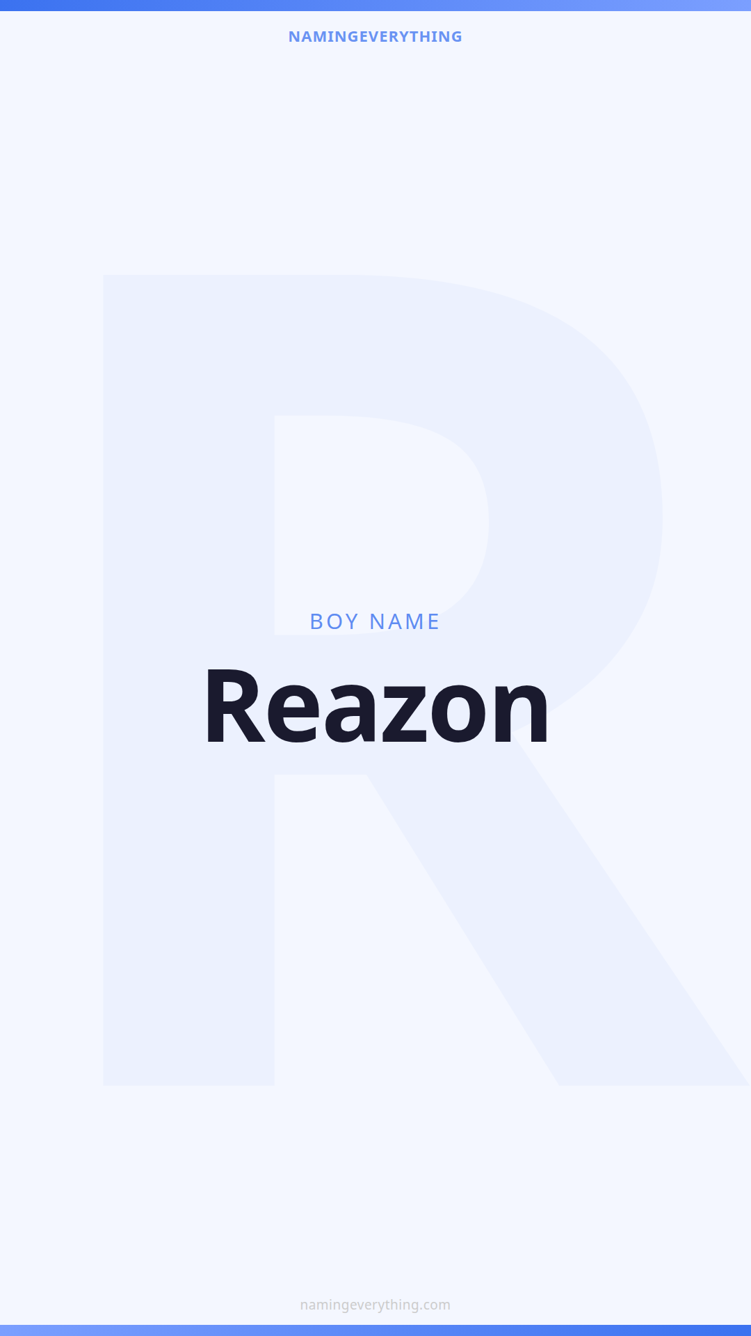 Download a shareable image with Reazon's meaning, origin, and popularity. Ready for Instagram, Pinterest, or texting to your partner.