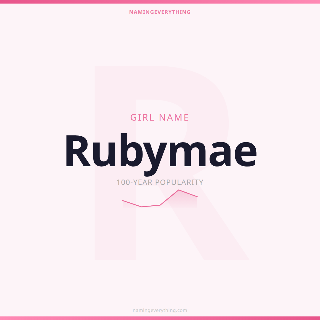 Download a shareable image with Rubymae's meaning, origin, and popularity. Ready for Instagram, Pinterest, or texting to your partner.