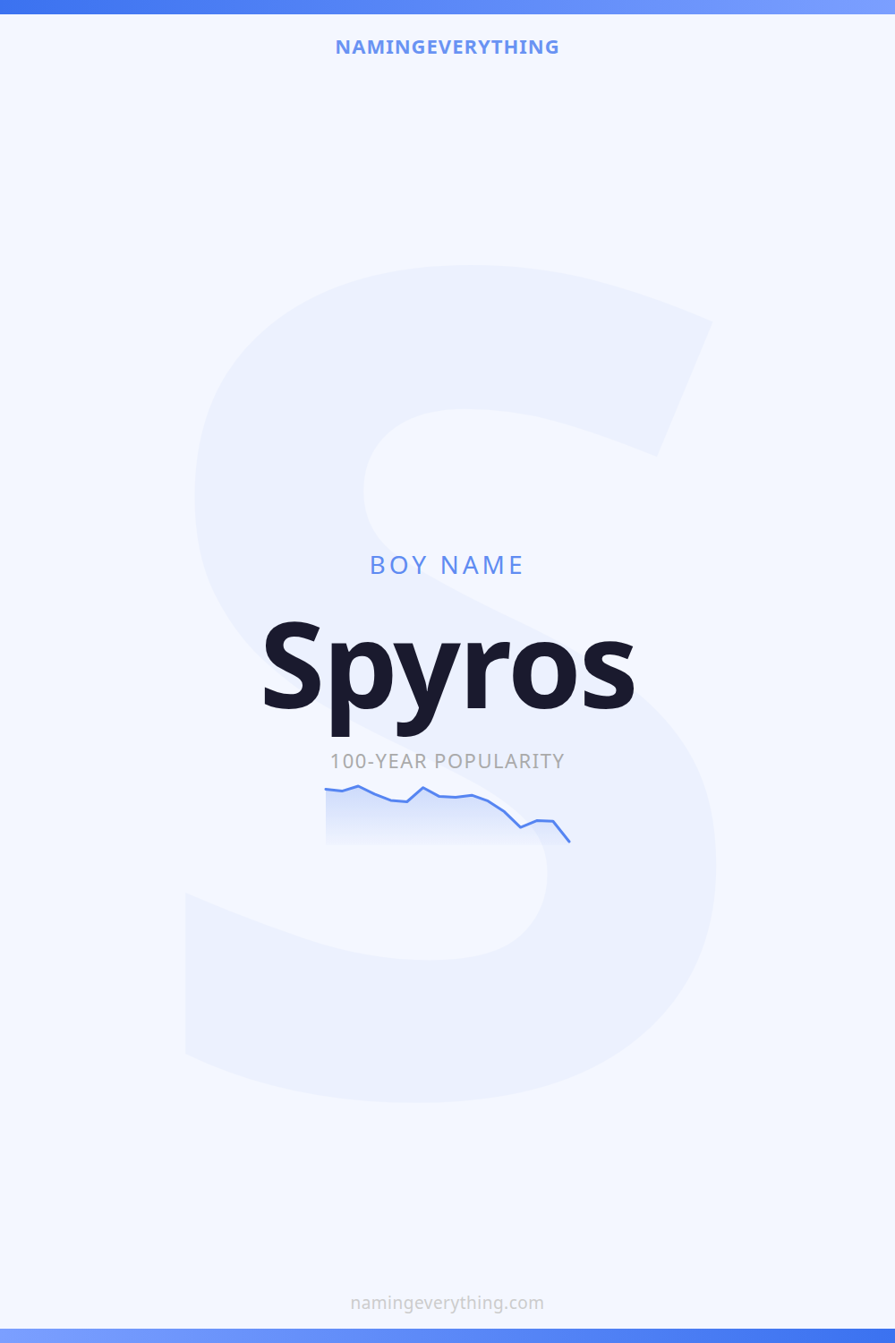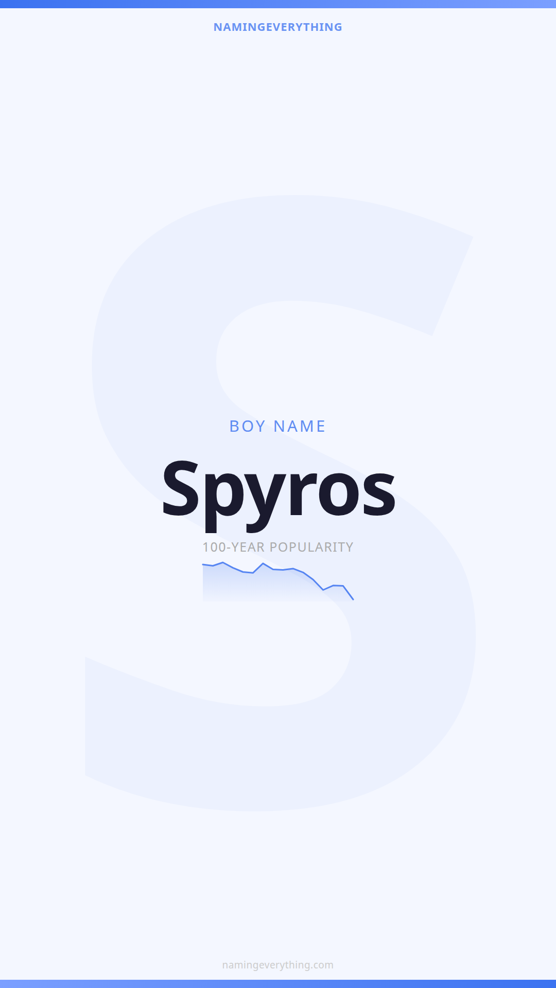 Download a shareable image with Spyros's meaning, origin, and popularity. Ready for Instagram, Pinterest, or texting to your partner.
