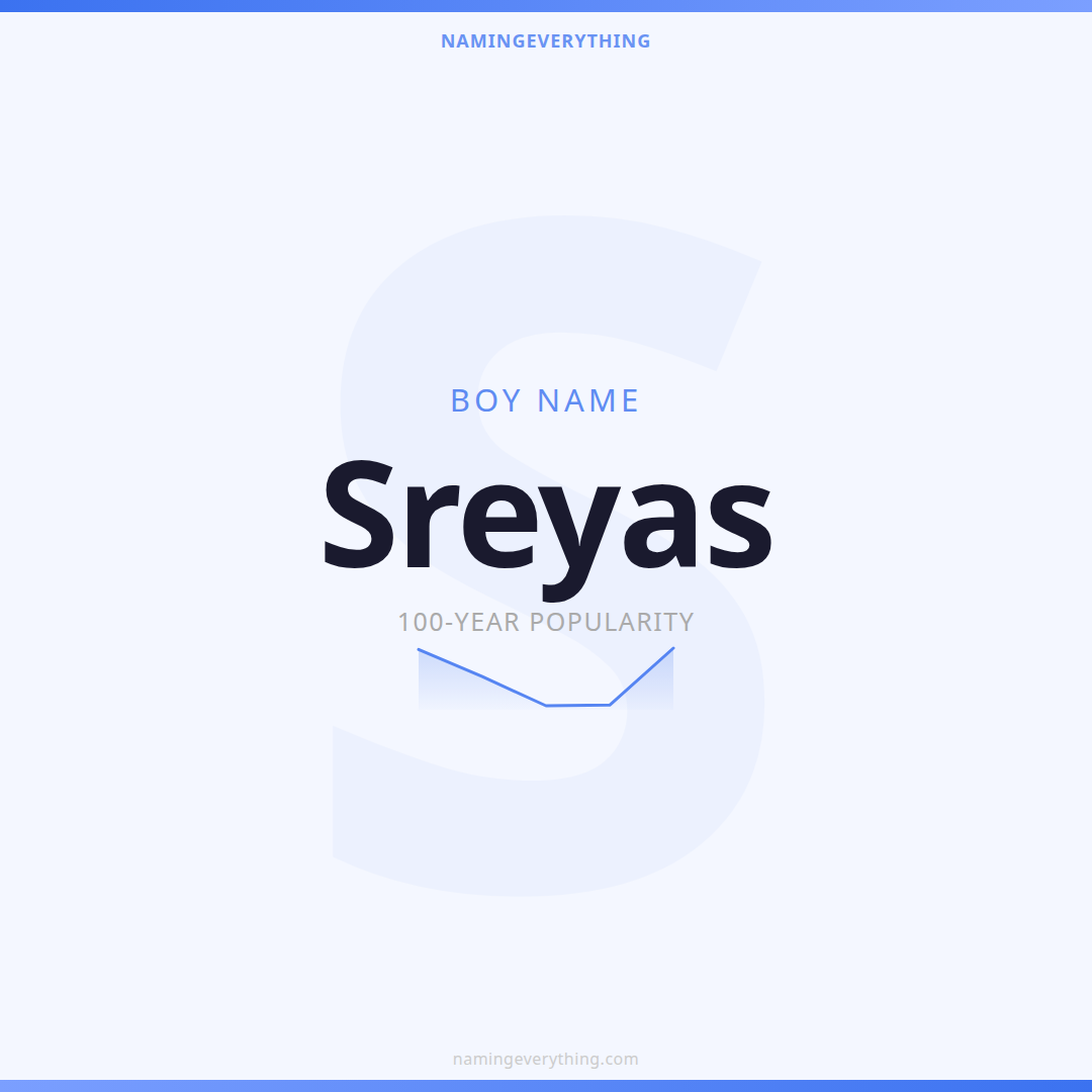 Download a shareable image with Sreyas's meaning, origin, and popularity. Ready for Instagram, Pinterest, or texting to your partner.
