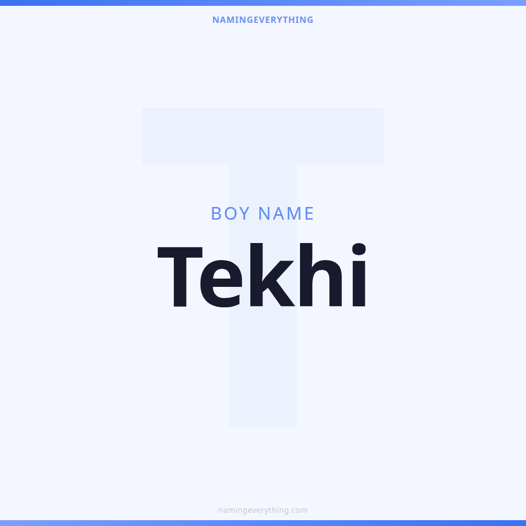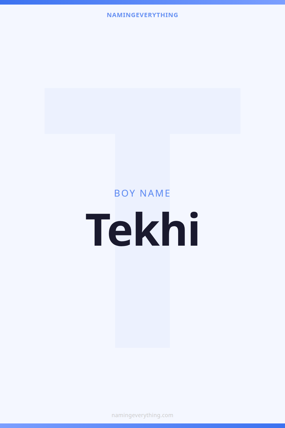 Download a shareable image with Tekhi's meaning, origin, and popularity. Ready for Instagram, Pinterest, or texting to your partner.