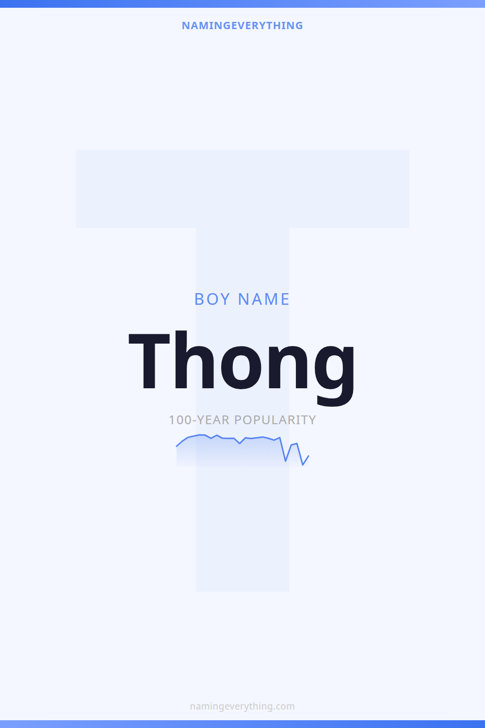 Thong is currently ranked #12,071 in popularity for boy names in the United States.