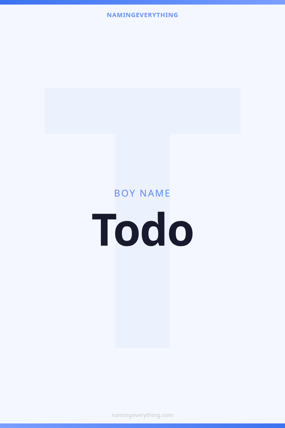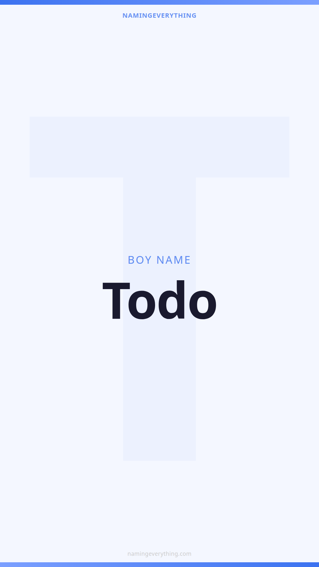 Download a shareable image with Todo's meaning, origin, and popularity. Ready for Instagram, Pinterest, or texting to your partner.