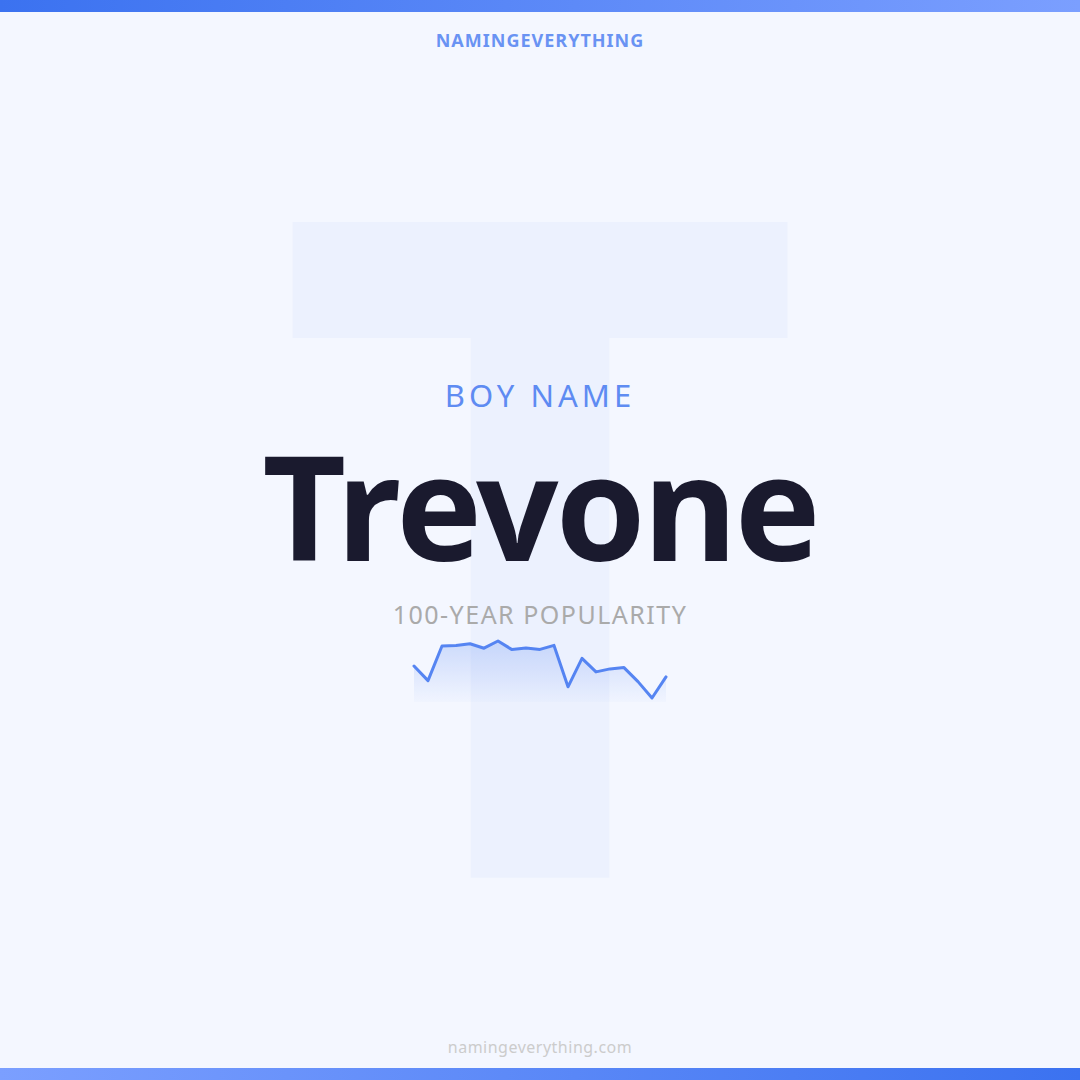 Download a shareable image with Trevone's meaning, origin, and popularity. Ready for Instagram, Pinterest, or texting to your partner.