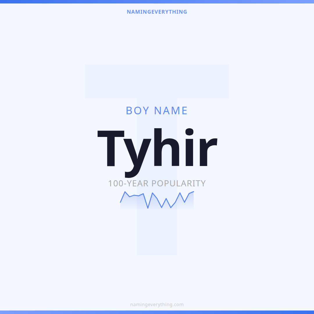 Download a shareable image with Tyhir's meaning, origin, and popularity. Ready for Instagram, Pinterest, or texting to your partner.