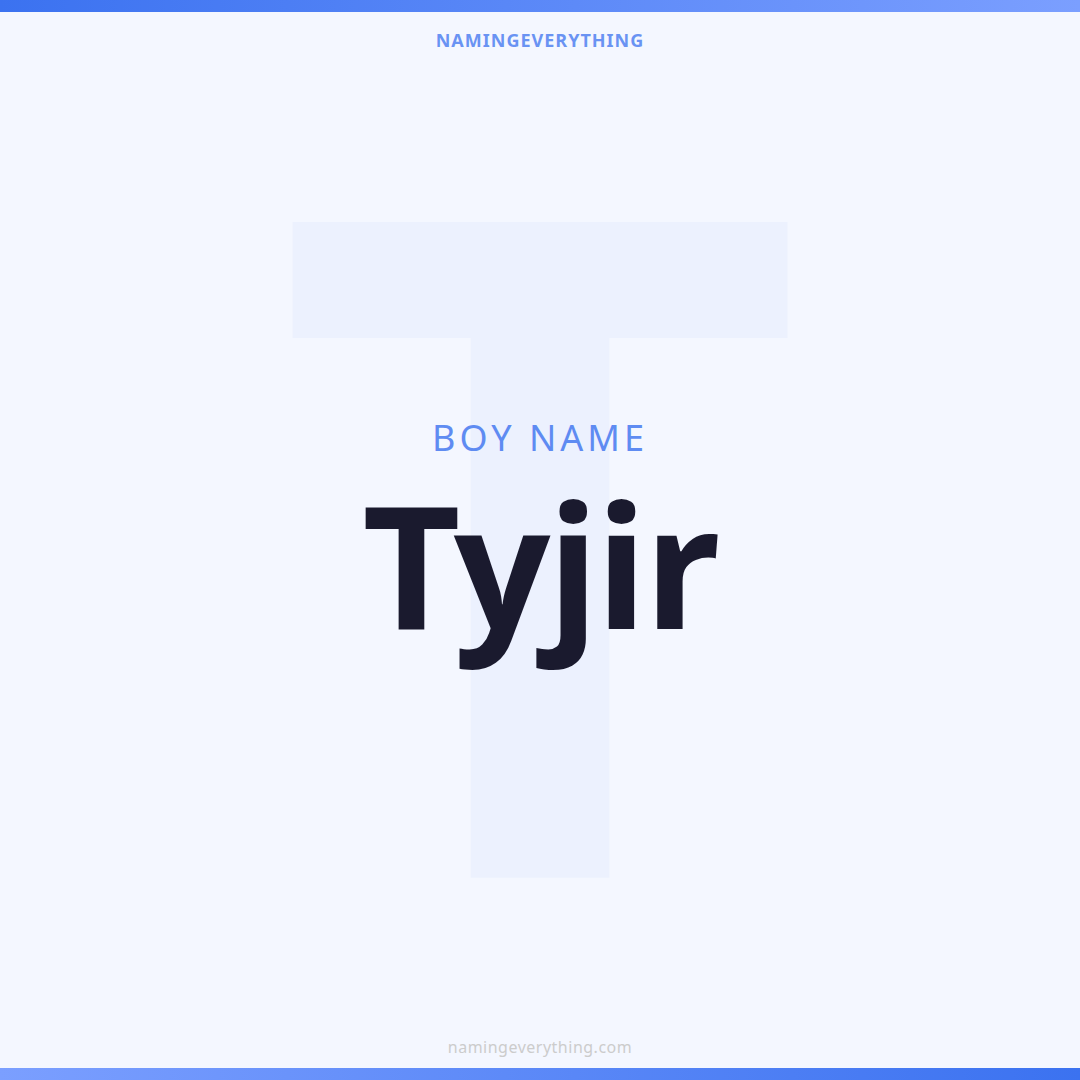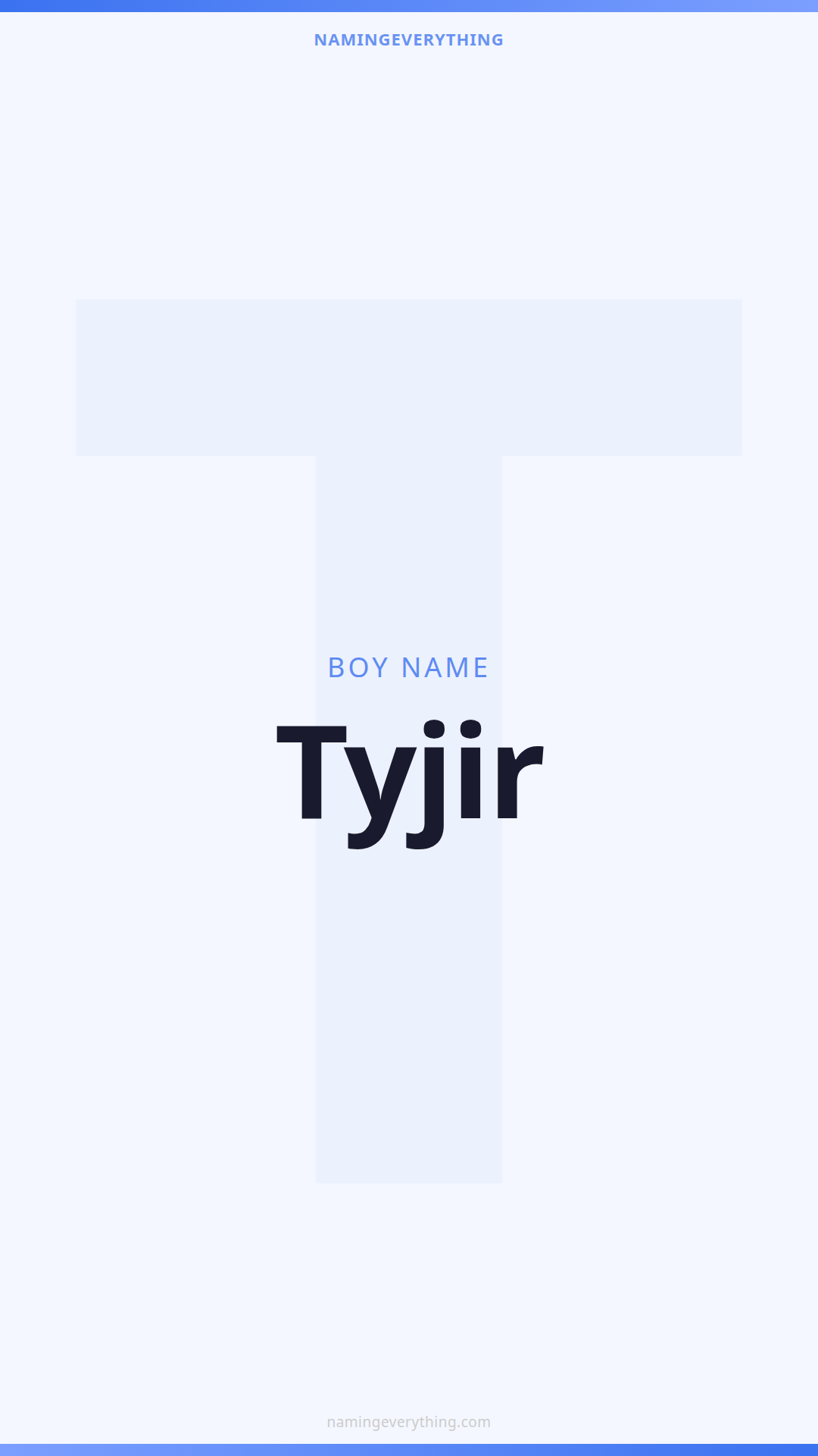 Download a shareable image with Tyjir's meaning, origin, and popularity. Ready for Instagram, Pinterest, or texting to your partner.