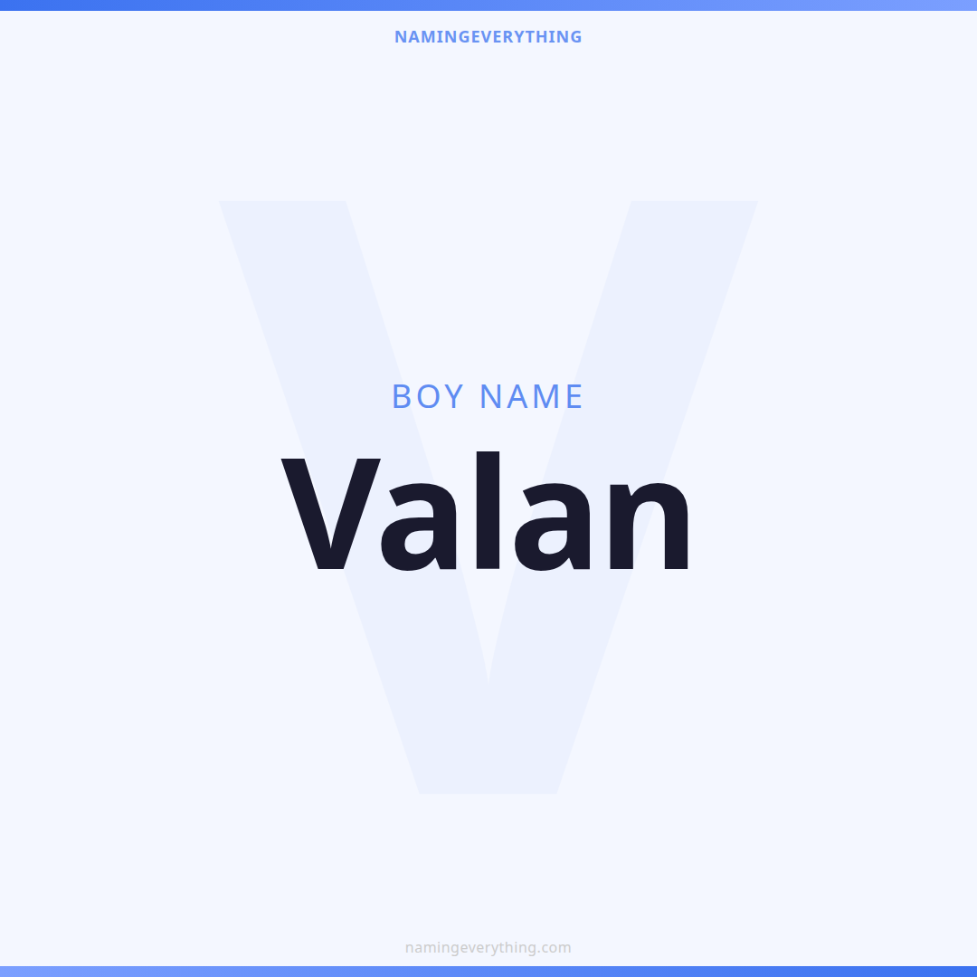 Download a shareable image with Valan's meaning, origin, and popularity. Ready for Instagram, Pinterest, or texting to your partner.