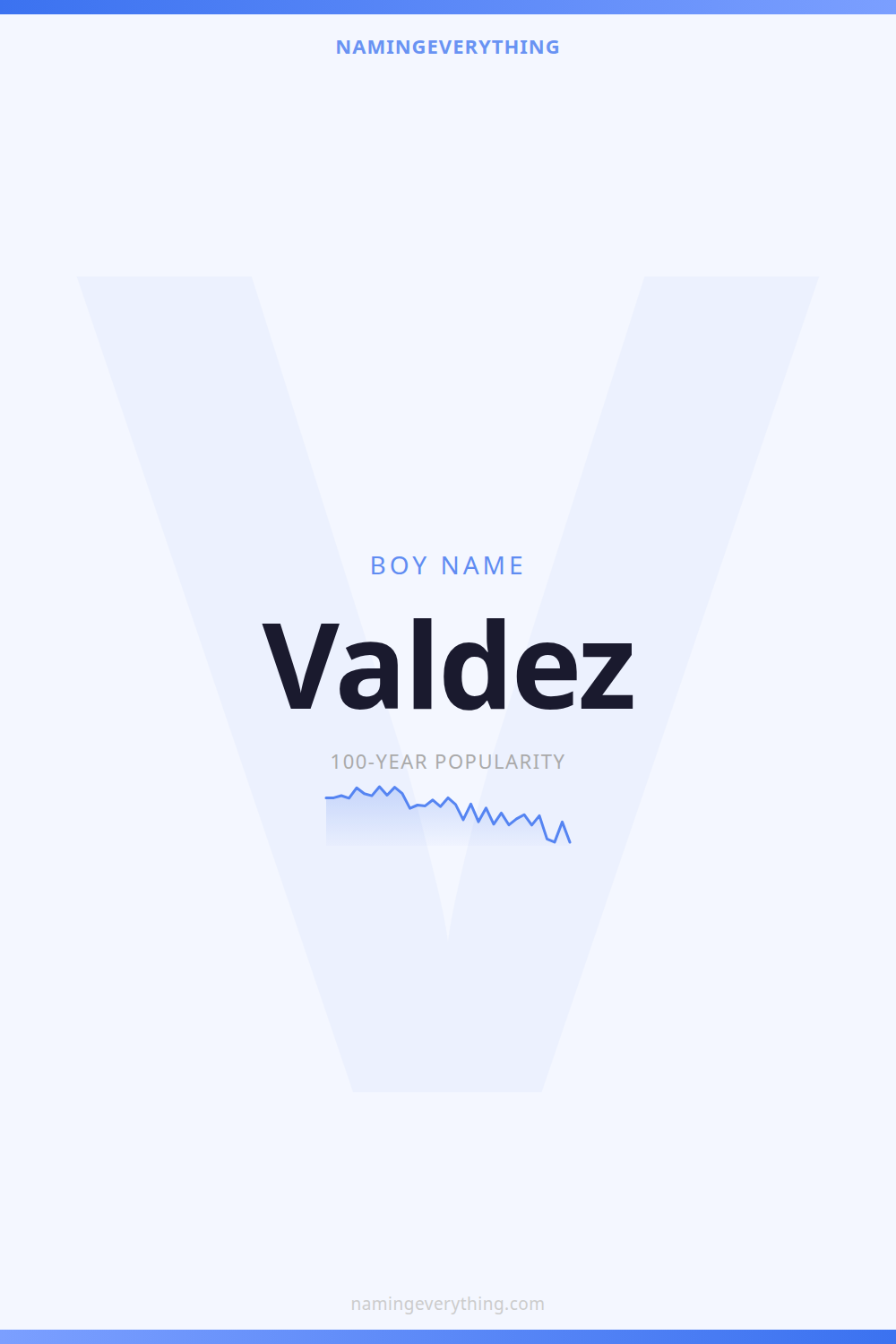 Download a shareable image with Valdez's meaning, origin, and popularity. Ready for Instagram, Pinterest, or texting to your partner.