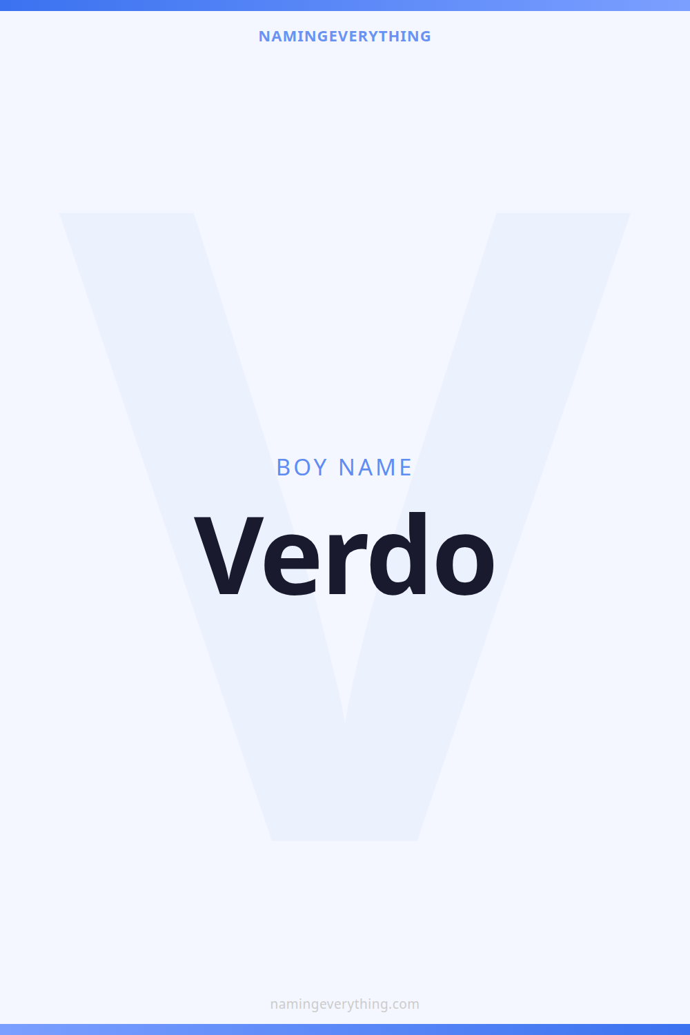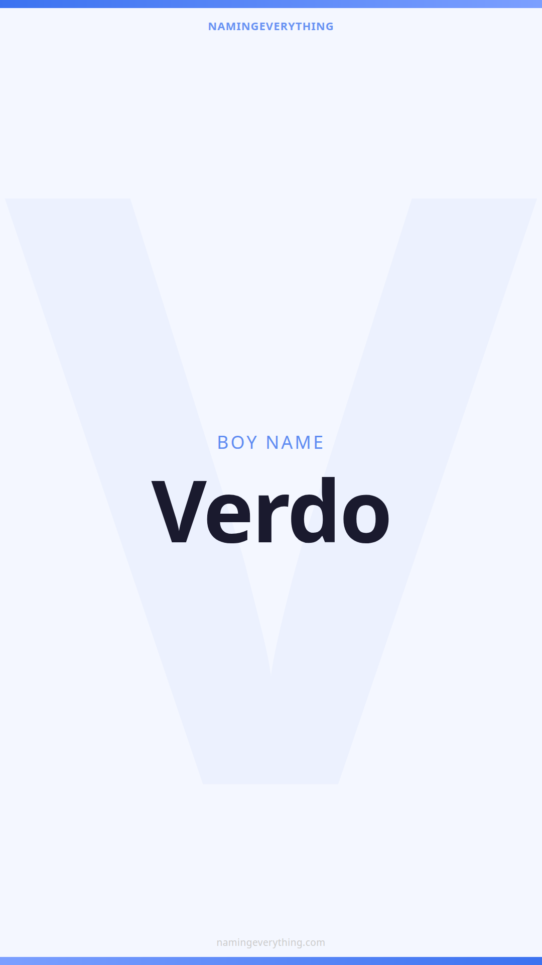 Download a shareable image with Verdo's meaning, origin, and popularity. Ready for Instagram, Pinterest, or texting to your partner.