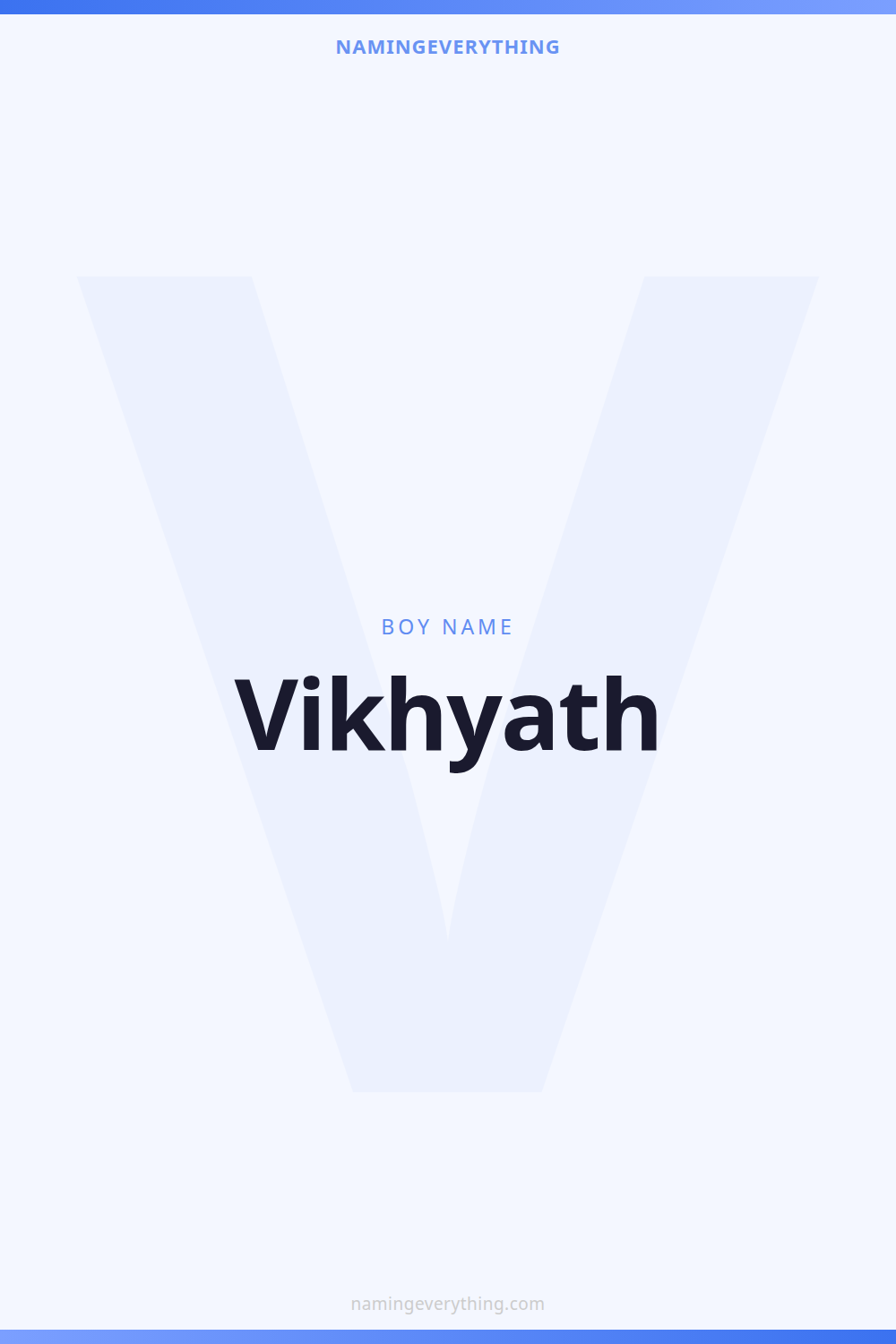 Download a shareable image with Vikhyath's meaning, origin, and popularity. Ready for Instagram, Pinterest, or texting to your partner.