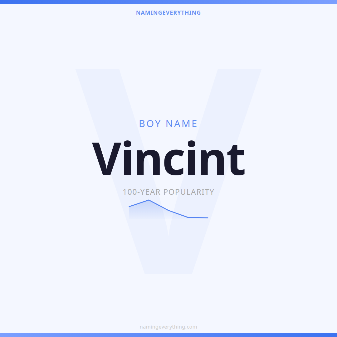 Download a shareable image with Vincint's meaning, origin, and popularity. Ready for Instagram, Pinterest, or texting to your partner.
