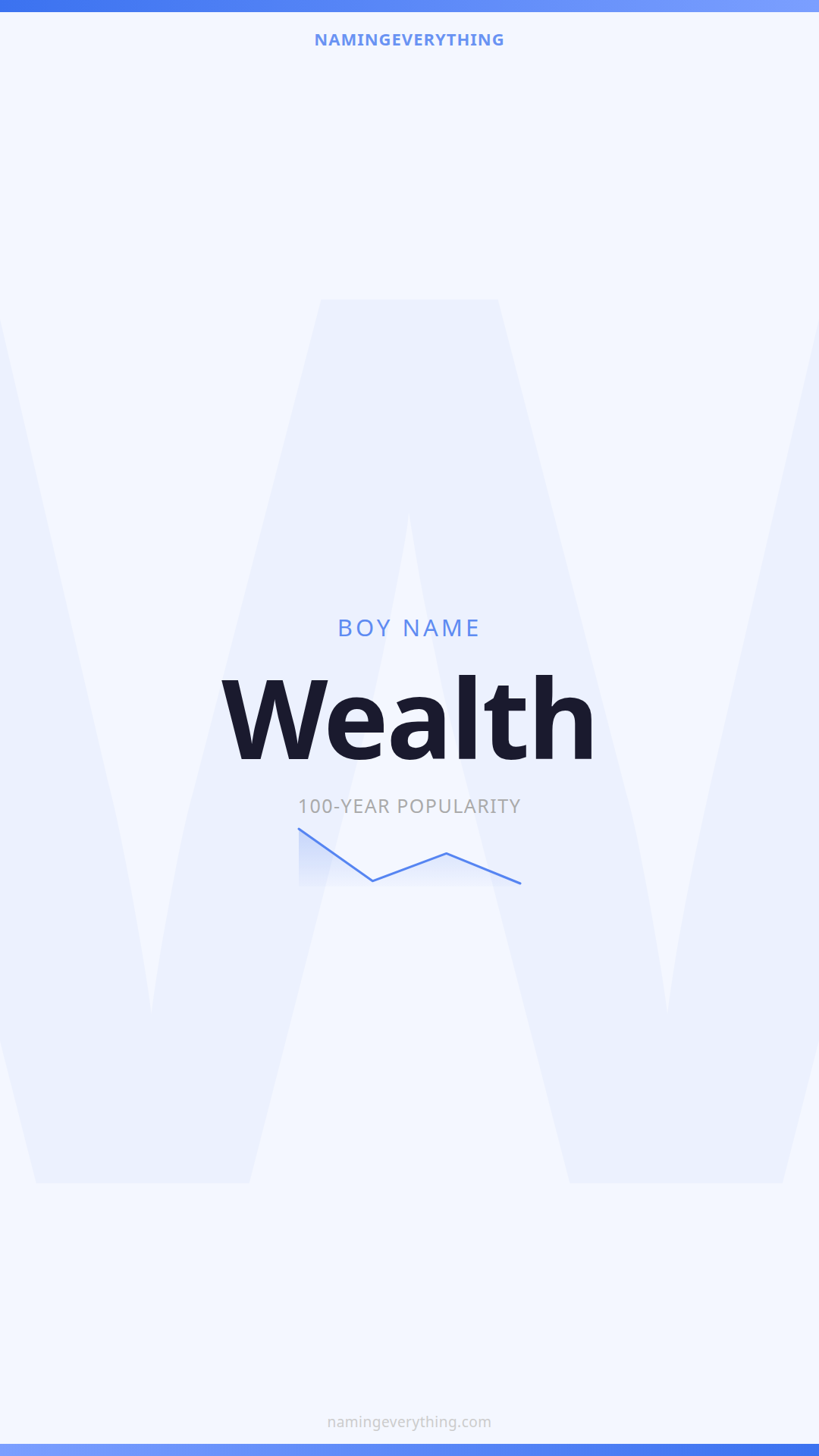 Download a shareable image with Wealth's meaning, origin, and popularity. Ready for Instagram, Pinterest, or texting to your partner.