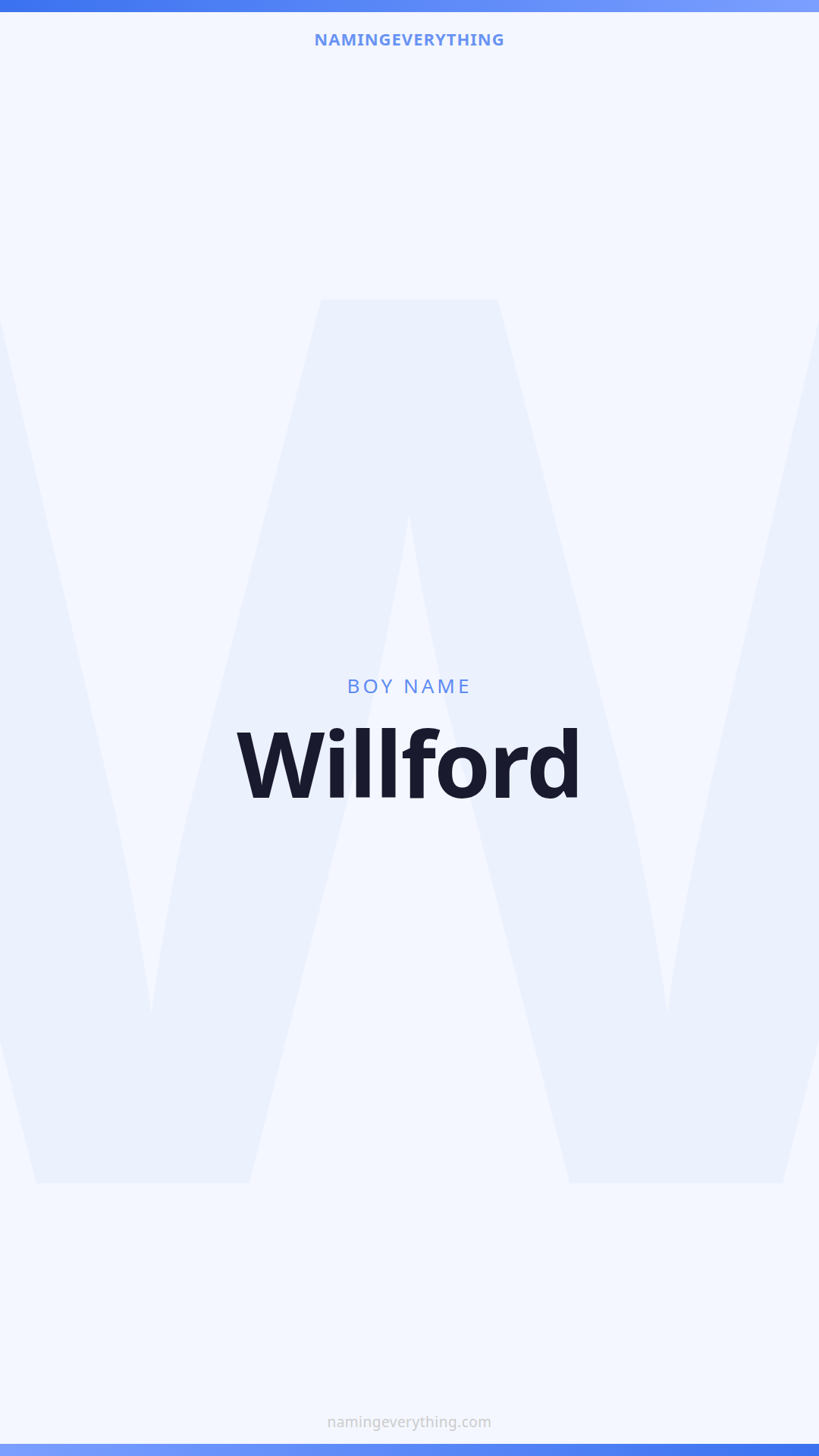 Download a shareable image with Willford's meaning, origin, and popularity. Ready for Instagram, Pinterest, or texting to your partner.