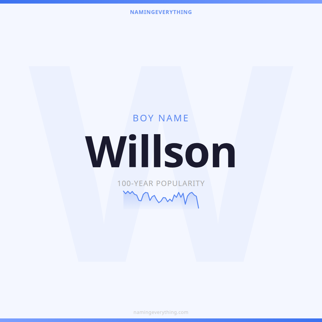 Download a shareable image with Willson's meaning, origin, and popularity. Ready for Instagram, Pinterest, or texting to your partner.