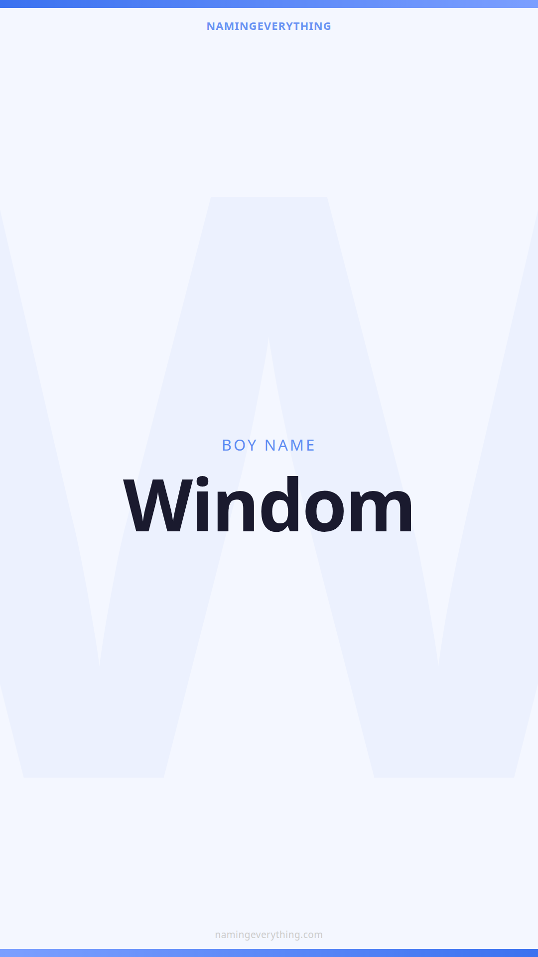 Download a shareable image with Windom's meaning, origin, and popularity. Ready for Instagram, Pinterest, or texting to your partner.