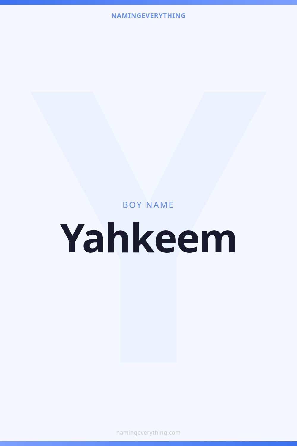 Download a shareable image with Yahkeem's meaning, origin, and popularity. Ready for Instagram, Pinterest, or texting to your partner.