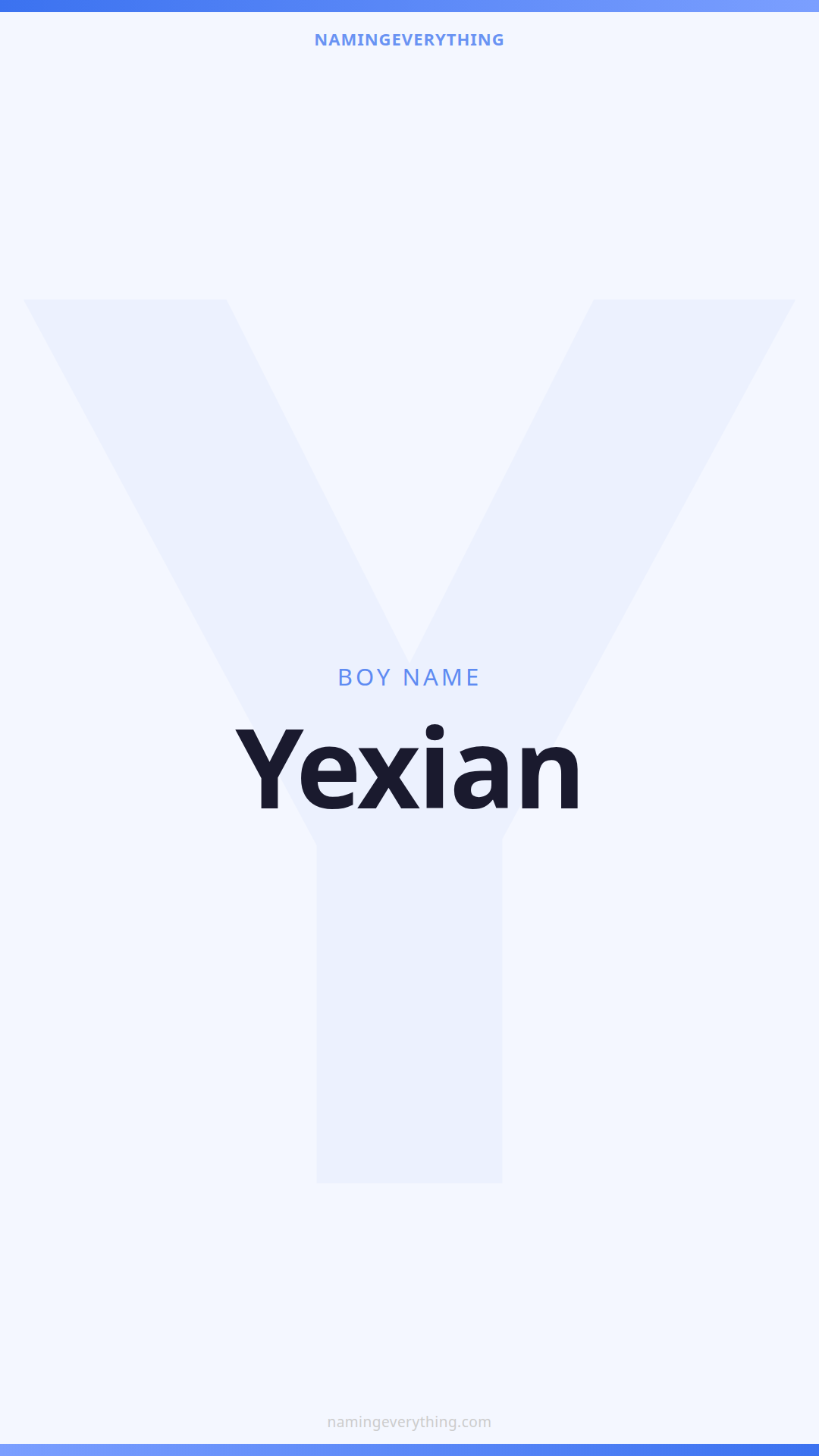 Download a shareable image with Yexian's meaning, origin, and popularity. Ready for Instagram, Pinterest, or texting to your partner.