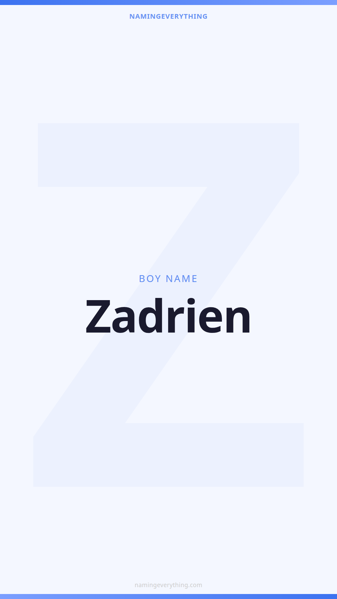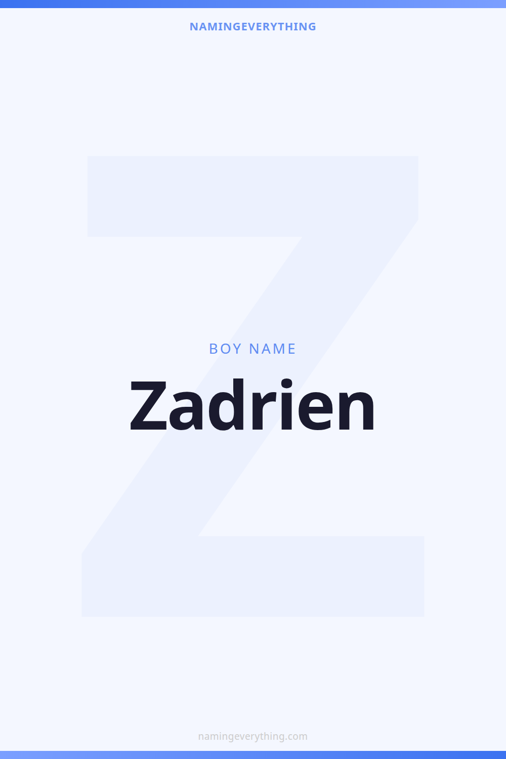 Download a shareable image with Zadrien's meaning, origin, and popularity. Ready for Instagram, Pinterest, or texting to your partner.