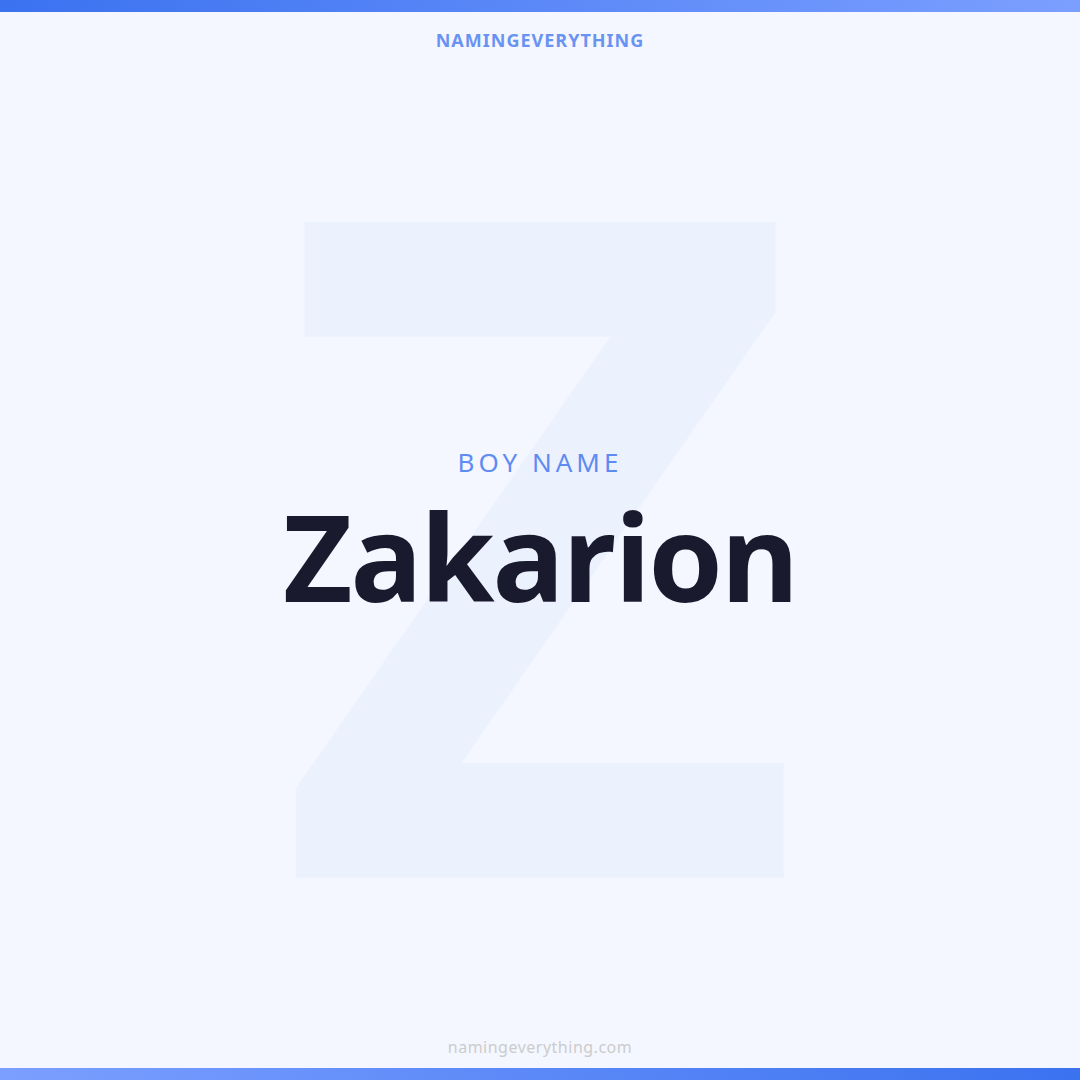 Download a shareable image with Zakarion's meaning, origin, and popularity. Ready for Instagram, Pinterest, or texting to your partner.