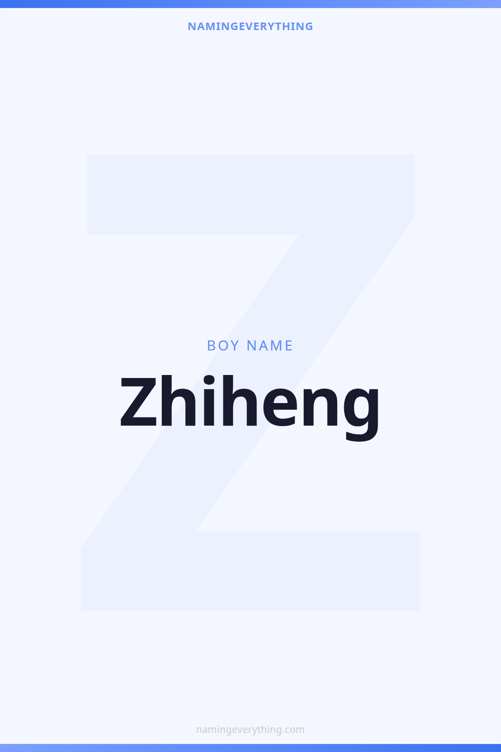 Download a shareable image with Zhiheng's meaning, origin, and popularity. Ready for Instagram, Pinterest, or texting to your partner.