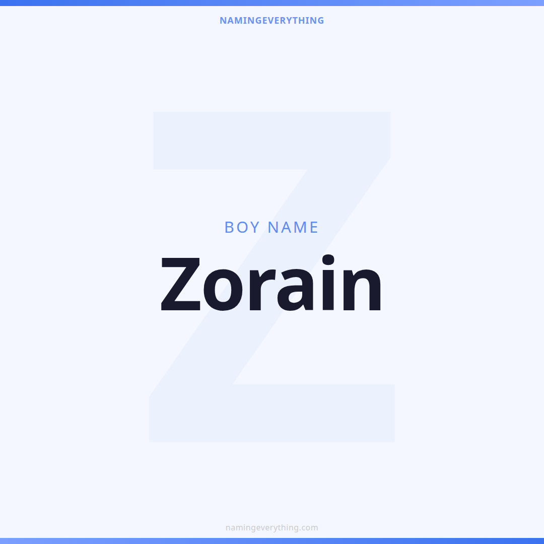 Download a shareable image with Zorain's meaning, origin, and popularity. Ready for Instagram, Pinterest, or texting to your partner.