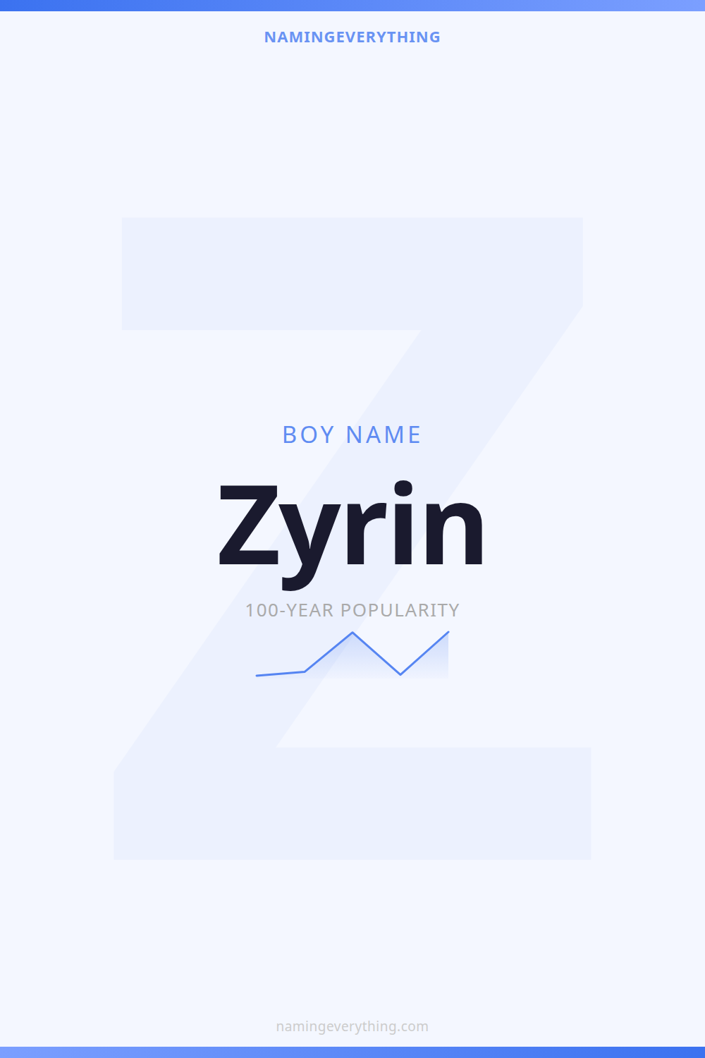 Download a shareable image with Zyrin's meaning, origin, and popularity. Ready for Instagram, Pinterest, or texting to your partner.
